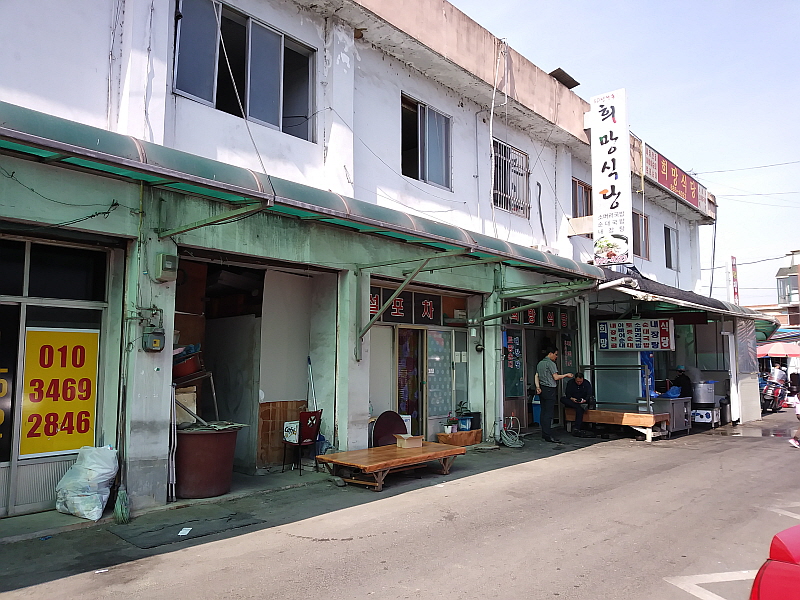 오래된 재래시장의 모습을 그대로 간직하고 있는 희망식당 건물은 세월의 흔적을 잘 엿 볼 수 있다. 내가 어릴적 포천에도 이런 재래시장이 아주 크진 않아도 있었다. 거기서 5일장이 열리는 날은 사람이 지나다니기 힘들 정도로 엄청 붐비곤 했다. 여주는 그런 재래시장이 남아 있고 거기에 현대적으로 약간의 기능상 보강을 하면서 아직도 많은 사람들에게 사랑받는 시장으로 운영이 되고 있었다.