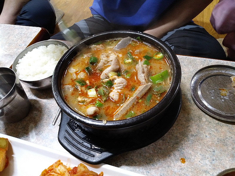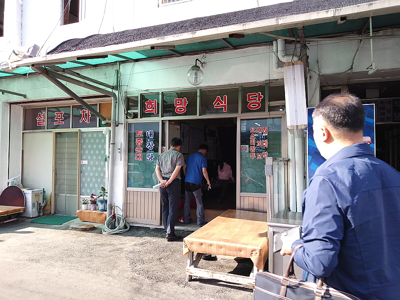 오래된 시장에 전통깊은 식당이 있다는 것은 어찌보면 당연한 일이다. 희망식당도 그런 포스가 느껴지는 곳이었다. 주로 순대국이나 소머리국밥 같은 우리네 전통적인 국밥을 팔고 있는 곳으로 많은 시장상인들과 손님들의 허기진 속을 달래주던 곳이리라... 간밤에 또 그렇게 무리해서 달린 우리들에게 아침상으로 받아든 순대국과 소머리국밥은 그대로 보약과 같은 것이다. 뽀얀 돼지뼈 국물이 먹음직스런 순대국은 한국 사람이라면 누구나 좋아하는 해장 국밥의 모습이었다. 탁자도 실내홀도 세월의 무게를 담고 있는 이곳은 왠지 영화나 드라마의 한 장면에서 본 것 같은 친근하면서도 익숙한 분위기를 자아낸다.