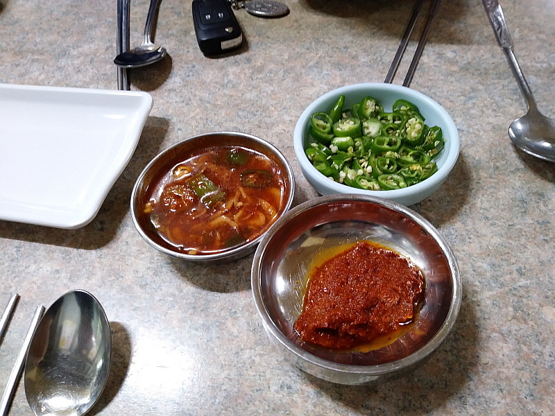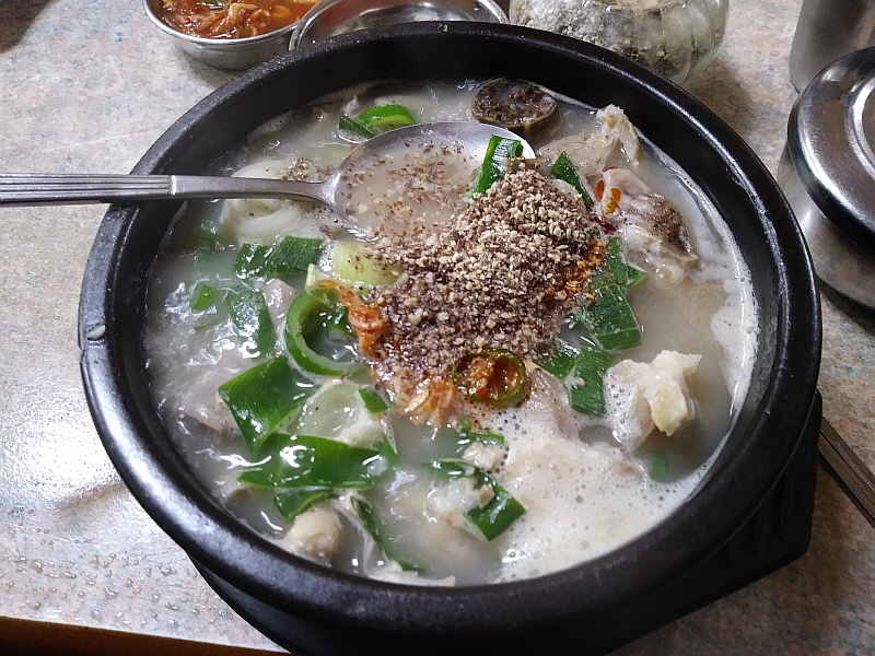 순대국은 어느 곳이나 일단 국 그릇을 받아 들면 손님이 스스로 일정 부분 마지막 조리를 해야 한다. 고추씨기름도 넣고, 양념장도 넣고, 청양고추와 싱싱해 보이는 파도 넣고, 거기에 돼지고기와 너무나 잘 어울리는 새우젓을 넣고 화룡점정으로 들깨가루를 넣는다. 그러다 보면 어느덧 뽀얗던 국물이 점점 시뻘건 해장국 색으로 변하게 된다. 이런 모습이 되면 이젠 먹어도 된다는 의미가 되는 것이다. 순대국을 좋아하는 나의 경우도 그냥 허연 국물보다 이런 붉은 빛이 강렬한 해장국같은 순대국이 좋다.