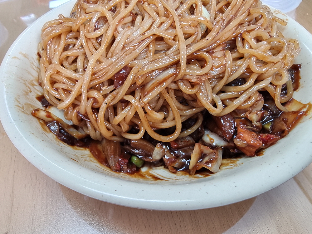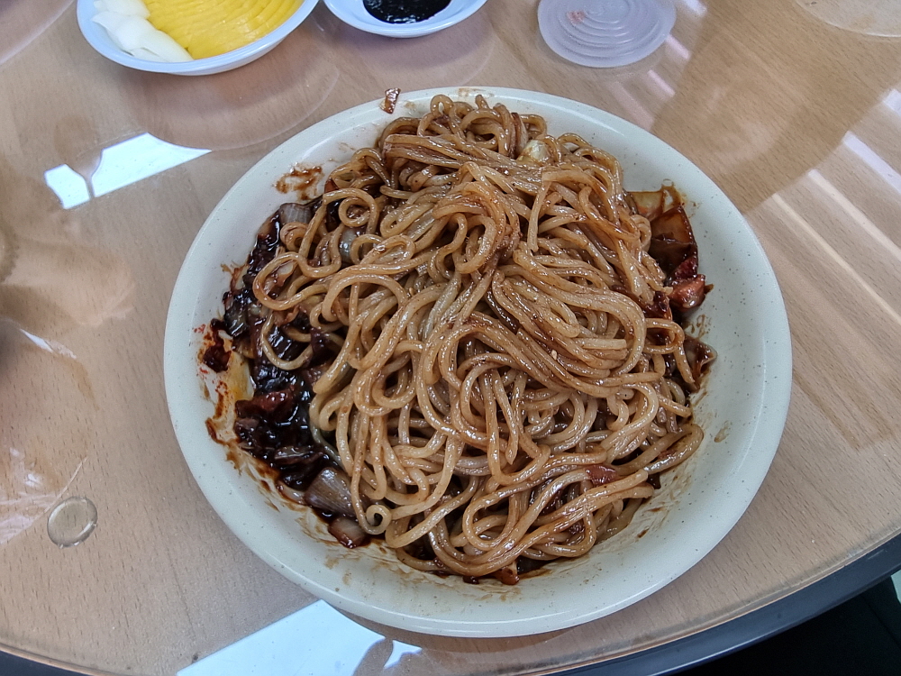 간짜장이라고는 하지만 그냥 일반적인 짜장면처럼 걸죽한 녹말느낌이 드는 짜장면이었다. 보통 간짜장은 바로 만들어 오지 않던가? 하긴 이것도 집집마다 성격이 좀 다르니 이집에선 이런 식으로 주는 모양이다. 면의 양이 다른 집들보다는 많아 보였다. 아무래도 배달을 위주로 하는 집이고 생각하건데 남자 손님들이 이런 배달을 음식을 더 선호하지 않을까 싶다. 그러니 그들의 욕구를 채우기 위해 양이 늘어난 것 아닐까? 달달한 냄새가 코를 찌르고, 하얀 면에 묻어가는 짜장소스를 보니 그저 입안에 침이 고였다. 역시 점심은 짜장이다.
