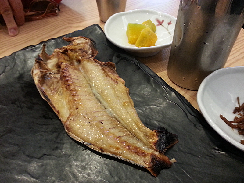 간단한 반찬과 턱하니 팔을 벌린 모양의 구운 생선이 한 마리 나왔다. 무식한 말이지만 첨에 우린 이게 돌우럭인줄 알았다. 종업원 말이 옥돔을 말렸다가 구워 내온 것이라 했다. 제주에선 이렇게 생선을 그냥 굽기 보다는 말린 다음에 구워 내오는 경우가 많다고 하는데 아마도 과거 생선을 보관하기 어려울 때 했던 지혜로운 방법이 그대로 이어 내려오는 것이리라... 옥돔구이는 정말 바다의 맛이 났다. 평소 생선을 그리 즐기지 않는 마눌이 아예 들고 뜯어 먹을 정도로 맛이 고소하고 옥돔의 명성대로 맛이 좋았다.