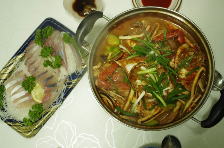 그렇게해서 드디어 기다리고 기다리던 꽃게탕이 끓기 시작했다. 아내 몰래 슬쩍 카트에 담은 방어회도 얌전히 상위로 올려 놓았다. "여보 요즘 방어회가 이렇게 싸네!" 묻지도 않았지만 도둑이 제발 저려 스스로 아내에게 방어를 담아왔다는 자수를 하면서 슬쩍 눈치를 보니 오늘 아내 상태로 봐서 한 잔 곁들어도 괜찮을 듯 싶었다. 완성된 꽃게탕과 방어회를 곁들어 먹는 저녁상이 어찌나 보기 좋고 신나던지 입에서 콧노래가 슬슬 흘러나왔다. 참 저렴하게 맛난 좋은 요리를 먹고 있자니 이런 즐거움과 행복한 시간을 어디서 찾을 수 있을까 하는 생각이 났다. 신나게 잘 먹는 아이들도 나도 참 맛있고 흥겨운 꽃게탕 저녁 식사였다.