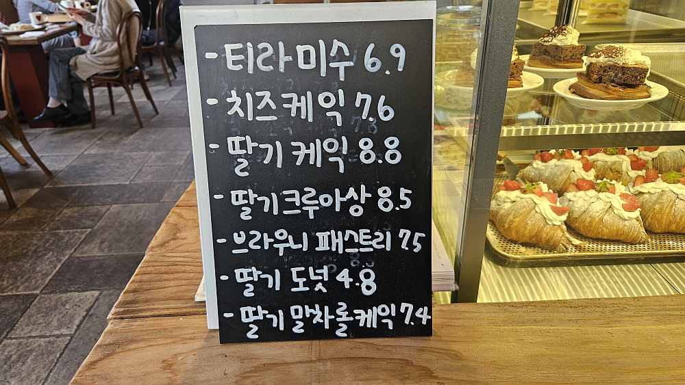 솔직히 빵의 가격은 좀 비싼 것 같긴 했다. 빵을 잘 먹지 않기 때문에 이 정도 가격이 어느 정도나 비싼 편인지는 잘 모르겠다. 하지만 커피는 그닥 비싼 것은 아니었다. 아메리카노가 5,800원 이면 스타벅스보다 조금 비싼 정도라 할 수 있겠다. 이런식의 고급진 카페들의 평균 가격보다는 살짝 싼 느낌이다. 빵들이 워낙 많기 때문에 한 번에 눈에 다 들어오지 않을 정도였다. 손님들 대부분은 젊은 나이보다는 나이가 있는 사람들이 많았는데도 이렇게나 많은 빵들이 팔린다는 것이 좀 신기하기도 했다. 우리나라 사람들이 언제부터 이렇게 빵을 즐겼지?