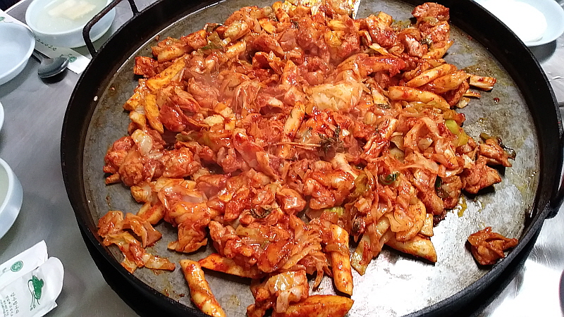 갑자기 저녁 약속이 잡히면서 장소도 전엔 전혀 가보지 못한 곳으로 정해졌다. 포천에 이런 오래된 닭갈비 집이 있는지 이번에 처음 알게 되었다. 포천이란 곳이 좁은 것 같으면서도 이렇게 예기치 못한 새로운 장소를 자주 만날 정도로 꽤나 넓은 곳인가 보다. 이곳 주인 아저씨 말로는 이 자리에서만 30년 동안 닭갈비를 팔았단다. 하지만 나는 이런 곳이 있는지 전혀 몰랐다. 이곳에 이런 맛집이 있을 줄은 말이다. 포천 시내에서 예전엔 아주 번화했던 곳이지만, 이젠 지나 다니는 사람이 상대적으로 더 적은 이곳은 강병원 사거리에서 보건소 방면으로 길을 가다 좌회전한 골목 안쪽의 상가이다. 내가 어릴적엔 이곳에 경향극장이라는 영화관도 있었고, 빵집도 있었고, 다방과 술집도 많은 어쩌면 포천에서 가장 번화했던 곳이다. 하지만 지금은 그런 과거의 영화를 거의 찾아 보긴 힘들 정도로 사람의 발길이 많지 않은 곳이다.