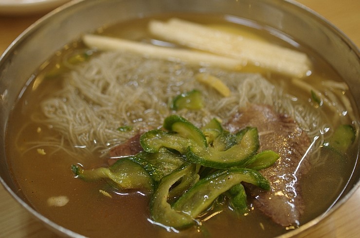 사실 물냉면보다 비빔냉면을 만들기가 더 어려운 것 아닐까? 저 양념이 만들어내는 맛의 조화를 따라하지 못해 2류가 되는 것 아닌가? 암튼 나의 물냉면도 맘에 들지 않은 것은 아니다. 냉면 면발이 가늘고 탱글거리는 것이 역시 명불허전이구나 싶었다. 조금은 진하다 싶은 물냉면 육수를 한 모금 마시니 그 시원함과 구수함이란...역시 두시간 차을 몰고 온 보람이 있었다. 아니 이집이 이렇게 양이 많았나 싶을 정도로 양도 꽤나 많았다. 일단 아내는 엄지손가락을 펴 보이며 성공적인 방문이라는 사인을 주었다. 나 역시 고개를 끄덕이며 우리의 오늘 선택이 잘 되었다고 사인을 보냈다.