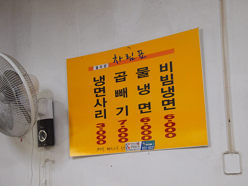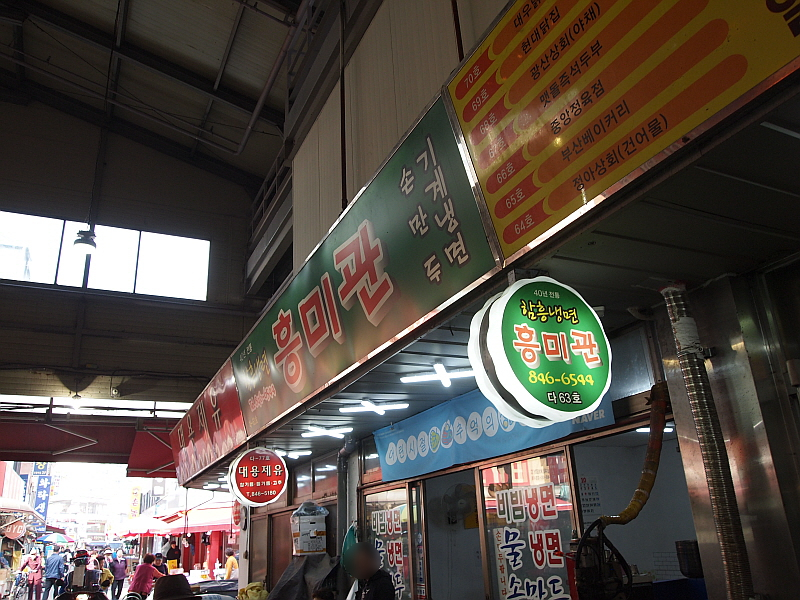 다양한 먹을거리와 볼거리가 있어 우리는 의정부 제일시장을 자주 찾는다. 아들녀석 보내기에 조금 시간이 남기에 우리는 모처럼 이곳을 다시 찾았다. 닭꼬치와 다코야끼를 좋아하는 전형적인 애들 입맛의 아들은 이곳에 오면 물만난 고기처럼 눈빛이 살아난다. 제일 한 가운데 먹거리 골목 입구에 여러 반찬가게와 함께 이 가게들이 있다. 나는 별 관심이 없지만 아들녀석이 하도 신나게 먹기에 오길 잘했다 싶었다. 마눌은 나는 뭘 먹고 싶냐고 했다. 나는 몇 번 왔다가 오전 일찍 와서 아직 면이 없다는 말에 발길을 돌렸던 흥미관이라는 냉면집을 가고 싶다고 했다. 제일시장 안에는 의외로 이렇게 저렴하게 냉면을 파는 집들이 꽤나 있다.