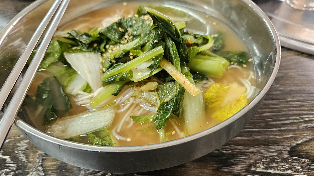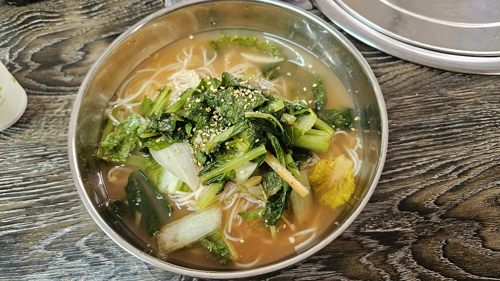 의성 마늘이라는 것은 들어 본적이 있는데 비슷한 지역일까? 아무튼 식당 안에서도 마늘을 팔고 있었고, 밖에도 온통 마늘밭이었다. 심지어 마늘쫑도 함부로 가지고 말라는 문구가 여기 저기 있을 정도로 마늘이 지천인 곳이다. 신녕 마늘이 유명하다는 것을 이번 여행에서 처음 알게 된 셈이다. 주인장이 혼자 음식을 만들고 서빙을 하는 전형적인 시골식당으로 열무김치말이 국수나 칼국수는 너무하다 할 정도로 투박했다. 과연 시골 인심이라 해야할까? 양은 넉넉했다. 너무 소박한 비주얼에 그만 실소가 나왔다. 정말 흔히들 말하는 집에서 해주는 것과 거의 같은 비주얼의 국수들이었기 때문이다.