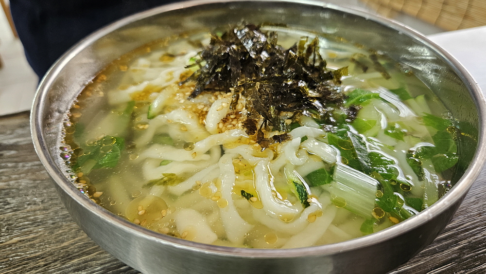 그렇다면 과연 맛은? 맛도 딱 집에서 엄마가 해주는 그런 것이었다. 이걸 더 자세하게 표현한다면 너무 담백하고, 꾸밈없는 맛이다. 전혀 달거나 짜지 않고, 화려하지도 않고, 그렇지만 자연스러운 맛이 녹아 있고, 진심이 느껴지는 그런 맛이다. 이것이 도대체 무슨 맛이란 말인가? 아무튼 우린 먹으면서도 서로 얼굴을 보며서 키득 키득 웃었다. 정말 이상할 정도로 익숙한 맛이고, 자연스러운 맛이다. 물론 맛이 없다는 것은 전혀 아니다. 돈을 받고 파는 국수의 맛이 아니라는 것이다. 어쩜 이렇게 편안하고 자연스러운 국수을 만들어 내어줄 수 있는지 그것이 궁금했다.
