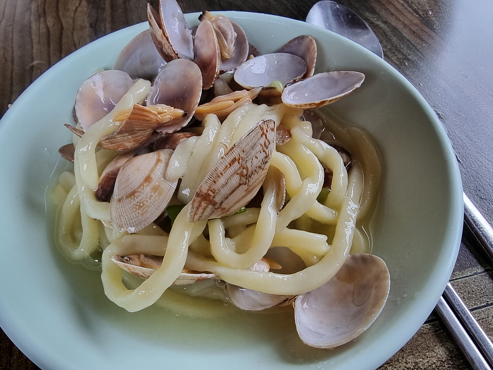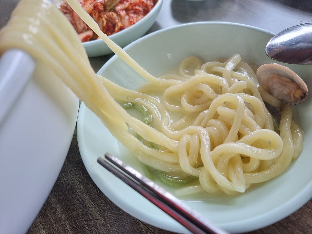 주인공인 바지락 칼국수 국물은 무척이나 담백하고 깔끔한 비주얼이었다. 진한 맛이 날까 싶을 정도로 맑은 국물이었다. 하지만 먹어보니 진하고 배틀한 조개국물의 구수한 맛이 그대로 전달되었다. 면도 두 가지 색상이고, 맛도 그렇고 어디선가 많이 먹어 본 아주 익숙한 맛이었다. 분명 이 맛은 우리가 자주 갔던 양주 최고집의 맛과 아주 비슷했다. 아니 그 집의 주방장이 잠깐 여기와서 음식을 한 것 아닐까 싶은 생각이 들 정도로 너무 비슷했다. 혹 같은 사람에게서 칼국수 만드는 법을 배운 것은 아닐까?