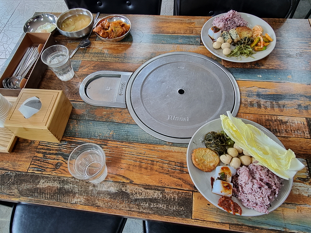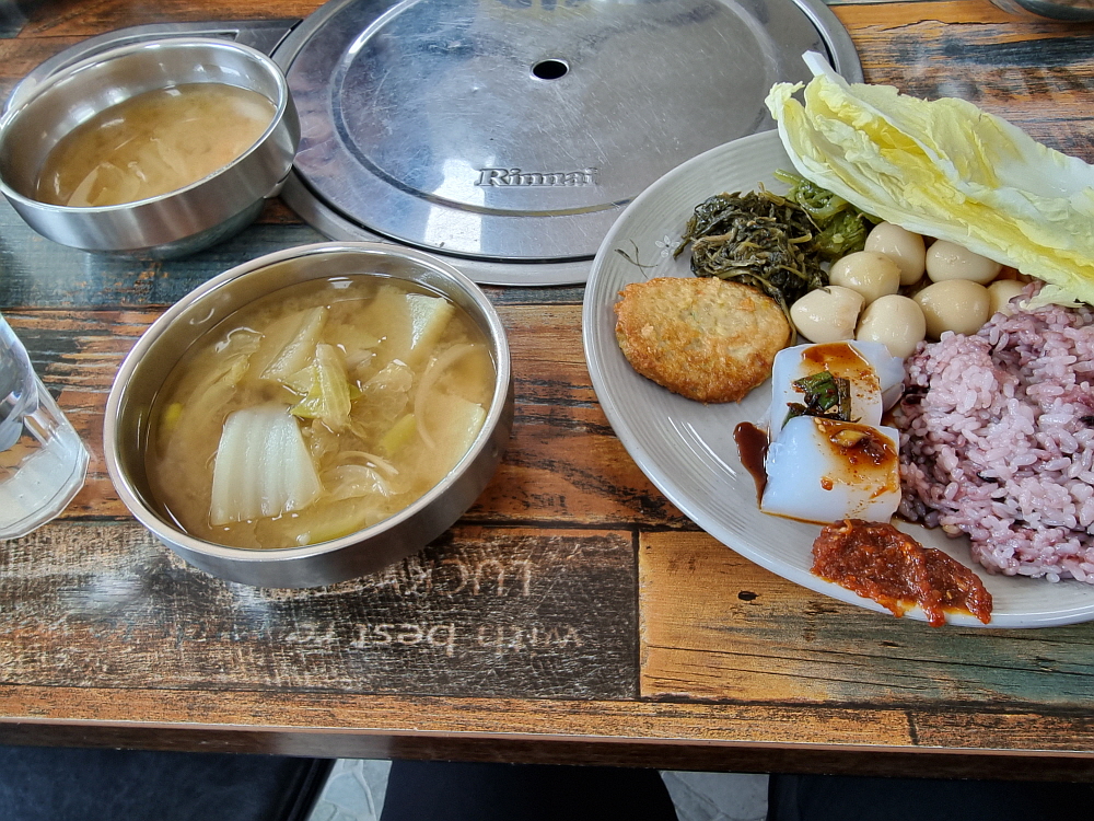 가격은 성인 기준 10,000원이다. 요즘 물가를 생각하면 가장 합리적인 선이다. 주인장은 손님이 많지 않을 때 직접 라면도 끓여주고, 계란후라이도 해준다. 집밥처럼 맘을 써주는 것이다. 한식부페의 가장 큰 단점은 음식이 만든지 시간이 지난 상태라 다 식었다는 것이다. 그래서인지 여기선 반찬을 많이 해놓지 않는 것 같았다. 그 때 그 때 내어주는 반찬이 가장 맛난 것 아니겠는가? 우린 각자 취향에 맞게 반찬과 밥을 떠 왔다. 이날 국은 된장 무국이었는데 개인적으로 가장 좋아하는 것이다. 사실 이 국에 김치 하나면 밥은 얼마든지 먹을 수 있다.