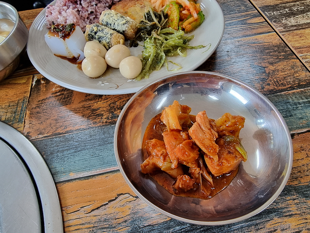 손님들은 아무래도 많은 양을 먹는 아재들이 주였다. 밥심으로 먹고 산다는 한국 사람들이 가장 좋아할 만한 식당이었다. 반찬은 간이 세지 않아 이집의 상호처럼 엄마의 밥상이 생각났다. 이런 밥이면 오후에도 든든하게 일할 수 있을 것 같다. 이런 한식부페가 여기 저기 있지만 조금씩 분위기가 다른데 여긴 뭐랄까... 그냥 집밥 같다는 표현이 가장 잘 맞는 곳 같다. 어찌보면 식당에 온 것이 아니라 아는 사람집에서 한 끼 먹는 기분이다. 편하고, 자연스럽고... 이날은 닭갈비도 있었는데 그러고 보면 반찬도 알차게 잘 구성되어 있는 편이다.