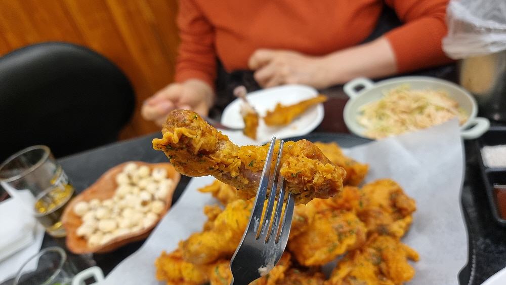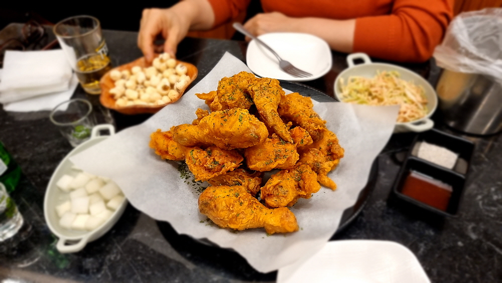 가격이 더 비싼 브랜드 통닭보다 맛이나 비주얼이 훨씬 나았다. 바삭한 후라이드 통닭은 과거의 행복했던 추억도 소환하는 특별한 능력이 있다. 이렇게 맛난 통닭을 제대로 한 마리 먹고 싶어서 얼른 어른이 되겠다는 생각을 했던 어린 시절이 있었다. 나누어 먹다보면 금새 바닥이 드러나는 통닭은 배불리 먹을 수 있는 음식이 아니었다. 늘 부족했다. 이젠 당당하게 닭다리 하나 들고 맥주 한 잔 마시며 크게 한입 베어 먹는다. 세월이 흘렀고, 나이를 먹었지만 그래도 후라이드 통닭 첫 한 입은 늘 설랜다. 이건 나이와 상관없는 조건반사인 것이다.