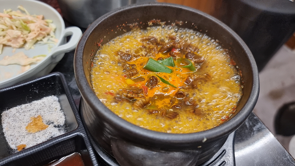통닭이 맛있기는 했지만 한국 사람은 간간한 국물이 있어야 술이 잘 넘어가는 법! 만인의 안주라는 번데기탕도 주문했다. 저렴하고 영양많은 번데기를 먹지 않는 사람들도 있다. 하지만 어릴적부터 늘 먹었던 사람 입장에서 이렇게 단백질 덩어리에 가격도 저렴하고 맛난 안주는 없지 않나 싶다. 간간한 번데기도 어린 시절 추억의 음식이다. 신문지 종이를 돌돌 말아 꼬깔처럼 만들어 거기게 번데기를 담아 팔던 아저씨가 학교 앞에 있었다. 가격은 무척 저렴했다. 하지만 그 때도 맛이 참 좋았다. 이날의 안주들은 그러니까 추억이라는 이름으로 팔아도 될 것들이었네...