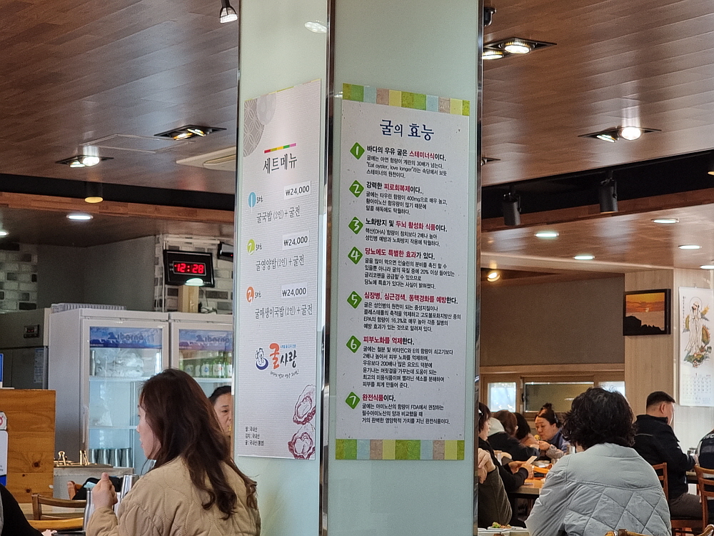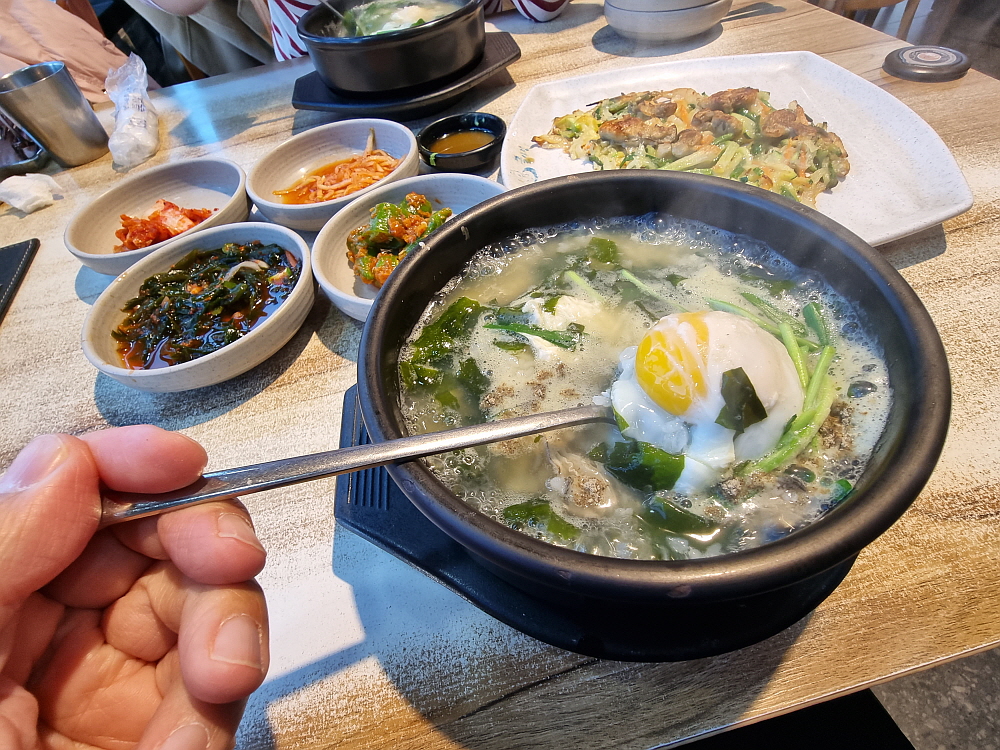 겨울에 먹는 굴국밥은 특별한 맛이 있다. 언 몸도 녹여주지만 영양이 많고, 특히 정력에 좋다하여 원기를 회복하는데 일익을 한다 알려져 있기 때문이다. 추운 겨울엔 아무래도 기력이 쇠하기 마련인데 굴을 먹으면서 몸을 보하는 것이다. 우리는 이집의 대표 메뉴인 세트메뉴를 주문했다. 굴국밥 2인에 굴전이 나오는 24,000원 세트이다. 비싸지 않은 가격이다. 구성도 좋다. 남녁이 아무래도 경제적인 가성비는 더 좋은 것 같다. 울산 근처에서 굴이 나오던가? 잘 모르겠네...