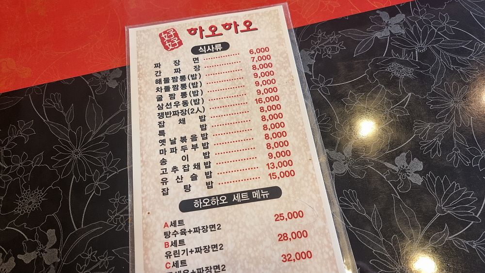 하오라는 말이 좋다는 말이니까 좋다, 좋아 뭐 이런식의 상호라 할 수 있다. 무엇을 먹을까 고민하다 중국집이라면 가장 시그니쳐인 짜장면을 먹어봐야 하지 않겠나 싶어 둘이 함께 먹을 수 있는 쟁반짜장을 주문했다. 2인분이 나온다는 쟁반짜장의 가격은 16,000원 이었다. 한 사람을 기준으로 하면 8,000원인 셈이다. 착한 가격이다. 요즘 쟁반짜장이니, 해물간짜장이니 하는 조금은 특별한 이름이 붙은 짜장이 만 원 이하인 집을 보지 못했는데 여기는 꽤 저렴한 편이다. 착한 가격이라 뭘 더 주문해야 하는 것 아닐까 싶은 생각이 들 정도였다.