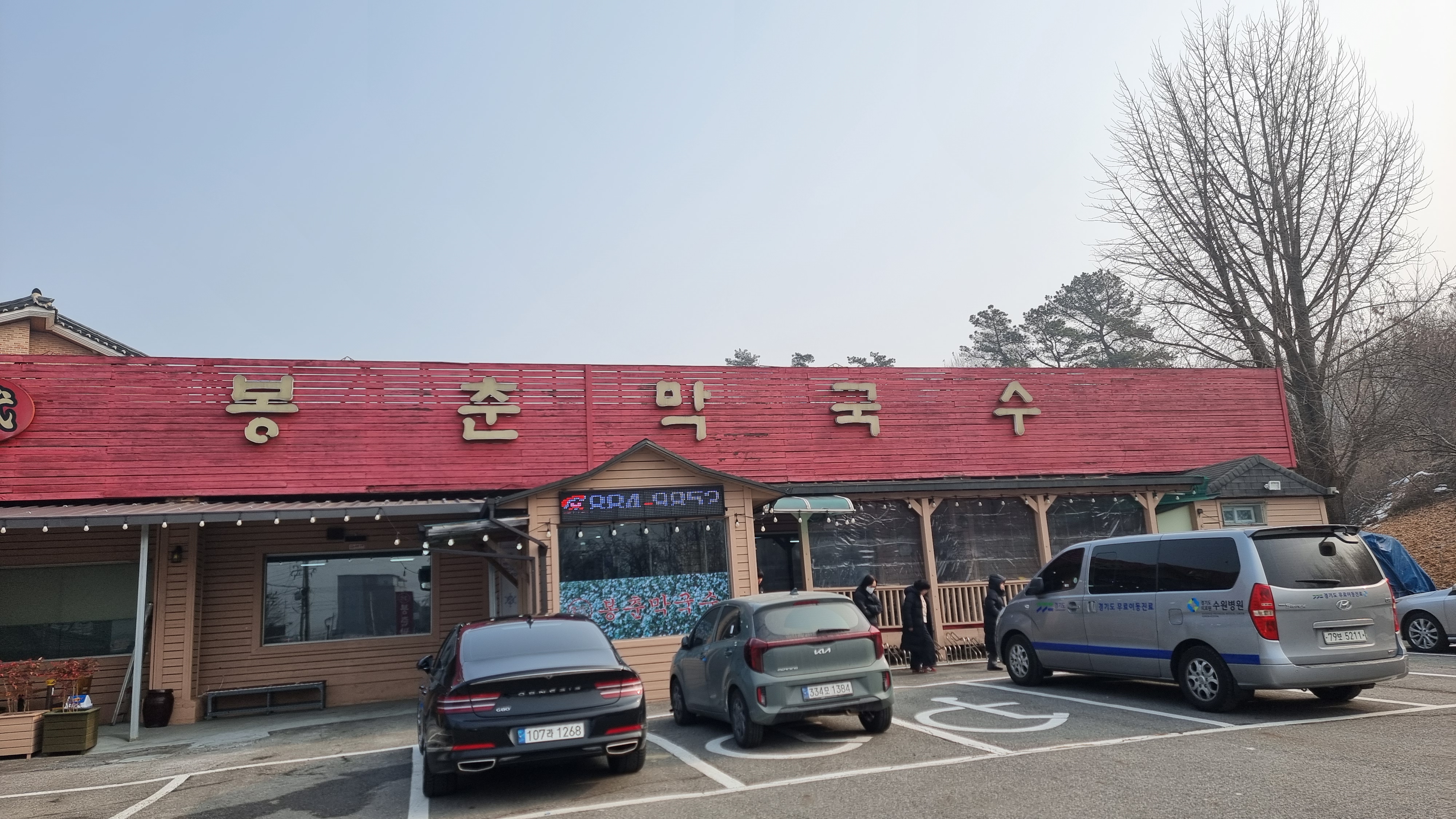 처음 목표는 물론 천서리 막국수 본점이었다. 그런데 이상할 정도로 동네가 조용했다. 그래서 뭔가 느낌이 쌔 했는데 역시나 천서리 막국수 본점의 휴일은 매주 화요일이란다. 이런 젠장... 하긴 미리 검색이라도 해보고 올 것을... 신중하지 못한 자신을 탓할 수밖에 없다. 그렇게 터덜 터덜 차를 돌려 나오다가 이집을 발견했다. 이 부근엔 막국수 집들이 많은 편인데 천서리막국수 본점을 따라 휴일인 집이 많았지만 이집은 영업을 하고 있었다. 이름은 봉춘막국수이다. 사실 유명하는 먹거리 촌에 가면 맛이 다들 거기서 거기인 경우가 많다. 유명세가 조금 없을 뿐이지 실력은 비슷하다는 말이다.
