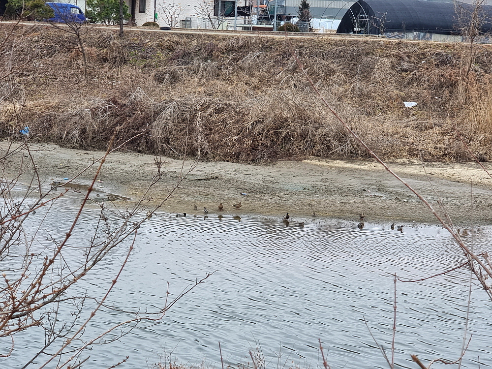 서로 조심하고, 긴장하여 불의의 사고가 나지 않게 주의하는 수밖에 없다. 하지만 자연의 섭리라는 철새들의 이동을 어찌 사람이 막을 수 있을까? 많게는 수천 킬로미터를 날아가는 철새들의 이해하기 힘든 여정 중에 잠시라도 휴식을 취하고 힘 빠진 날개도 쉬게 하는 장소로 포천이 있다는 것이 새들에게 위로가 될 수 있을까? 멀리 떨어져 새들의 쉬는 모습을 보고 있노라면 대자연의 거대한 섭리 중에 작은 하나의 생명으로 사람이나 새들이나 별 차이가 없어 보인다는 생각도 든다. 쉬고 있는 새들을 통해 또한 위로를 받는 사람도 있는 것이다. 한 10여 분 이렇게 서서 새들과 마음을 통하는 시간을 갖는 것이 이 시기 포천천이 주는 또 하나의 묘미이다.