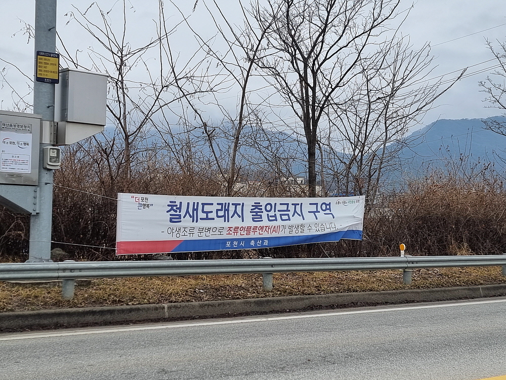 생각 같아서는 좀 더 가까이 다가가 사진이라도 찍고 싶지만, 도로 옆에 붙여 놓은 조류독감 예방을 위해 새들에게 가까이 가지 말라는 경고문구가 조금은 부담스럽게 다가온다. 우리나라 축산의 현실상 조류독감으로부터 완전하게 자유로울 수 없는 환경이라는 것이 안타깝다. 유난히 다른 나라보다 조류독감에 취약한 농가들에 대한 근본적인 대책이라도 나와야겠지만, 100년 전 수 많은 사람들의 목숨을 앗아간 스페인 독감이 바로 조류독감이었다는 발표로도 알 수 있듯 인류는 조류독감에서 완전하게 자유로울 수 없다.
