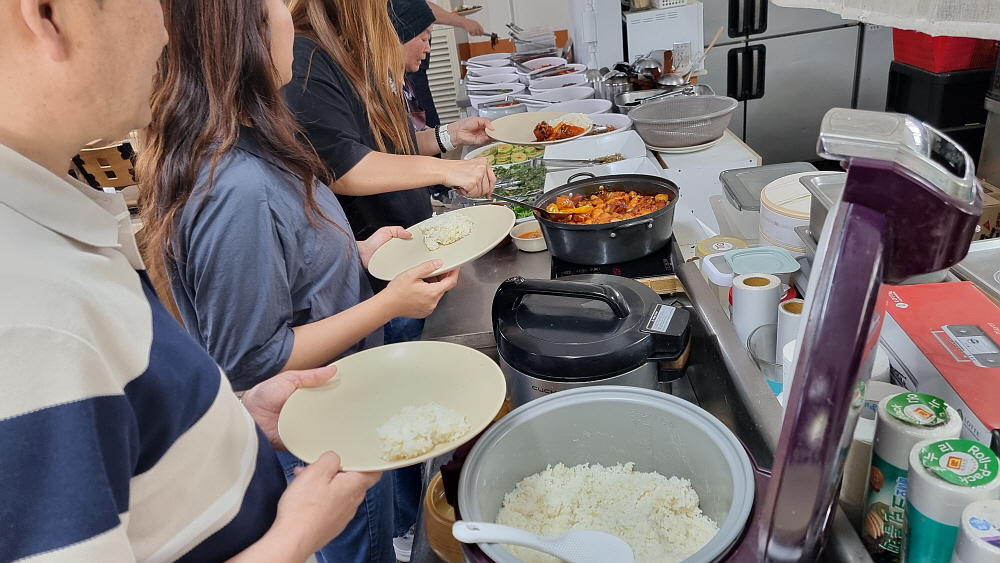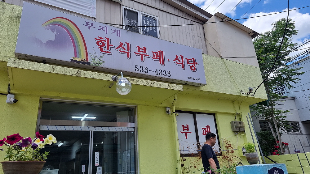 포천동 시내에 있는 무지개 한식부페라는 곳이다. 과거 감리교회 자리 바로 옆에 있다. 아는 분을 통해 여기 음식이 맛나다는 말을 듣고 찾아간 길이었다. 한식부페의 모습은 대부분 비슷하다. 나물과 밑반찬들이 많이 있고, 그날의 특별메뉴에 해당하는 찌개나 국이 있다. 거기에 고기 반찬과 전 같은 손이 많이 가는 음식들도 있다. 마치 배식을 받는 훈련병들처럼 한 줄로 서서 자신의 식판에 반찬과 밥을 알아서 담는 방식이다. 부페는 맞지만 두 번 이상 음식을 먹으러 가는 경우는 별로 없다. 그냥 한 번 퍼 온 음식이 그날의 한 끼 식사가 되는 것이다.