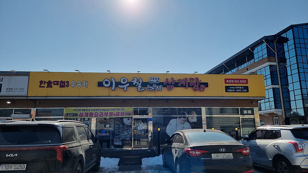 수 십년 만에 가장 길었다는 이번 한파는 지구 온난화 라는 말을 무색하게 만들었다. 과연 온난화라는 것이 있긴 한 것일까? 물론 이런 한파도 온난화의 영향일 수도 있긴 하지만 말이다. 이런 때 일수록 영양이 많은 음식으로 몸을 보해야 하는 법! 이날은 모처럼 함께 모여 점심을 먹기로 한 날이었다. 선택한 곳은 포천동의 이우철 한방 누룽지 삼계탕이란 곳이다. 체인점이긴 하지만 맛이 좋다고 소문이 나서 여름엔 줄을 서서 먹는 곳이란다. 개인적으로 삼계탕을 그렇게 즐기는 편은 아니다. 기왕에 물에 빠진 닭을 먹을 요량이라면 백숙이 더 낫다.