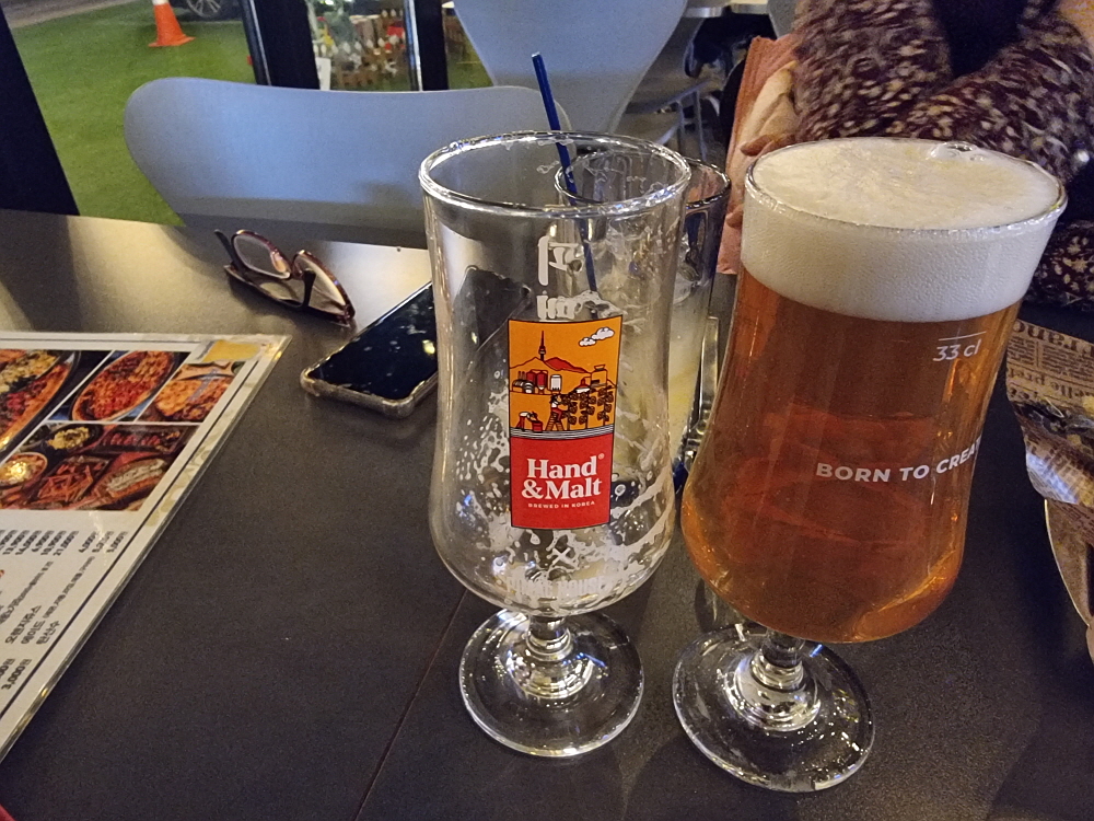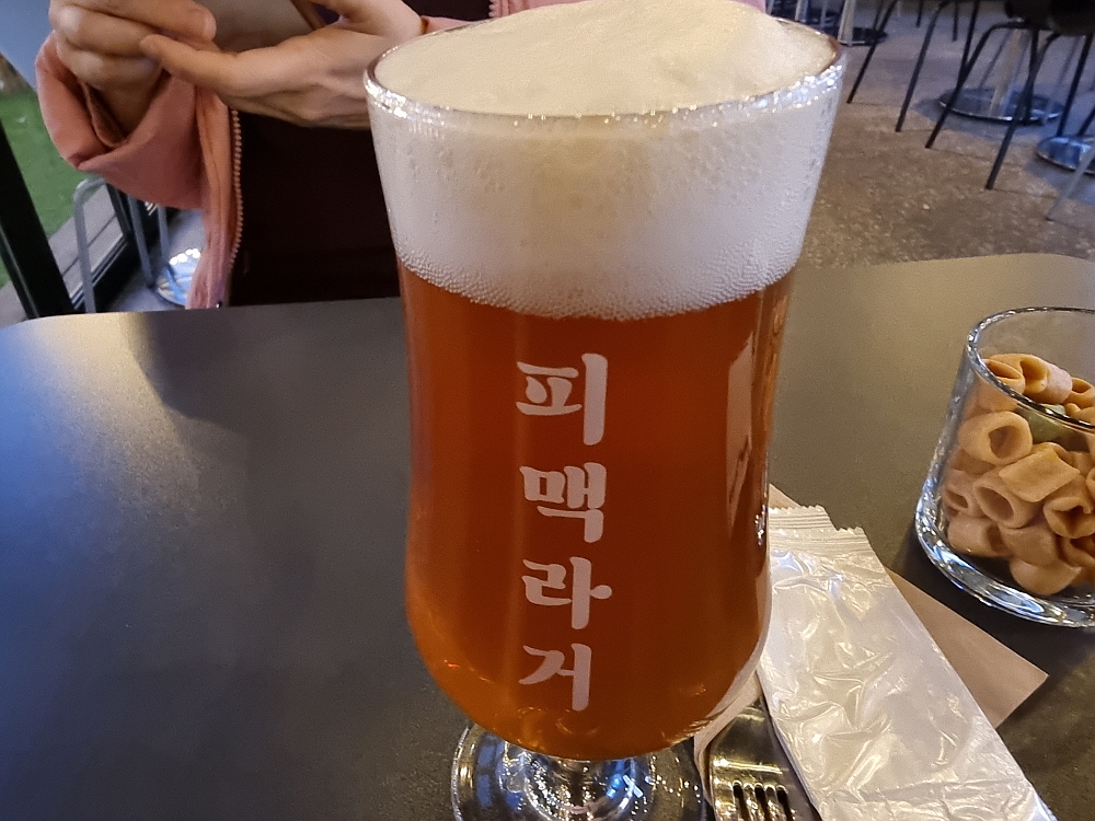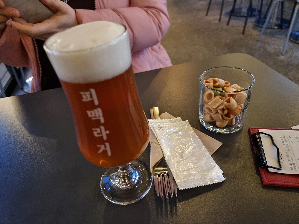 이집도 수제맥주 집처럼 시그니쳐 맥주가 있다. 가격이 제일 싼데 결과적으로 보면 가장 맛이 좋았다. 이름있고, 비싼 맥주라고 늘 만족스럽지 않다. 여기서도 그랬다. 맥주가 거창한 안주를 필요로 하지는 않지만 그래도 조각 피자 같은 안주가 있으면 먹고도 싶었는데 없었다. 그냥 먹태로 만족하기로 했다. 분위기는 참 좋았다. 젊은 취향의 인테리어와 분위기였다. 손님들도 다 그랬다. 여기선 우리가 가장 시니어인 것 같았다. 이렇게 젊은 분위기에서 즐기는 것이 좋긴 한데 눈치는 조금 보였다.