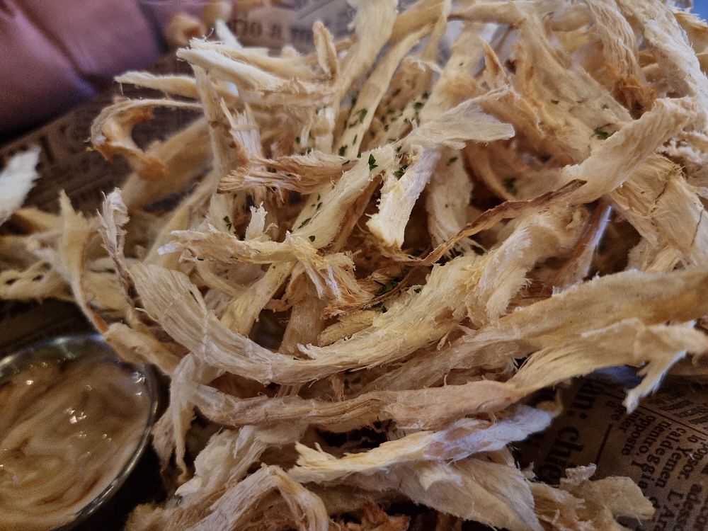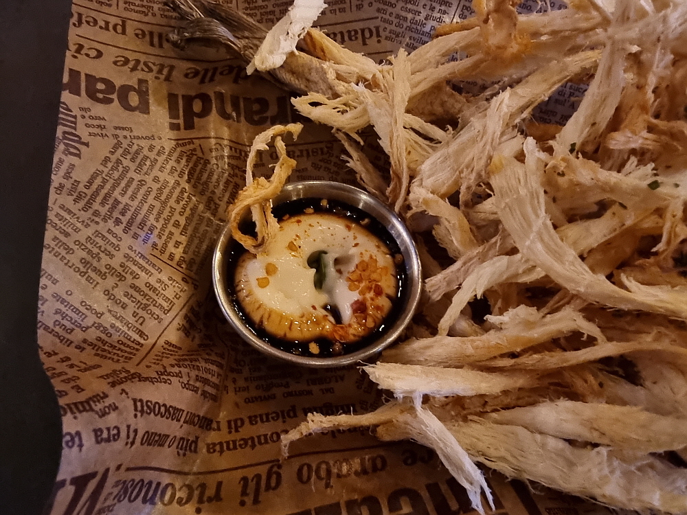 술에는 진심인 곳이다 보니 하이볼도 다른 집들보다 술 함량이 많은 것 같았다. 달지 않고 괜찮았다. 먹태 역시 다른 마른아주가 필요 없을 정도로 좋았다. 그런데 먹다보니 원래 먹태라는 음식이 이렇게 건조한 것이었던가? 기억속에 먹태는 포실 포실한 감이 있는 황태와 북어의 중간쯤 되는 명태 요리였다. 그런데 여기에서 북어를 잘라 준 느낌이 들었다. 그렇다고 맛이 떨어지는 것은 아니지만 글쎄 먹태를 정말 좋아하는 사람이라면 좀 다르다는 느낌을 가질 수 있겠다.