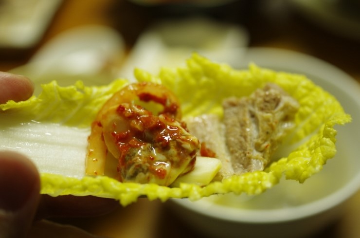 속이 노랗게 빛나는 배추는 너무나 달았다. 달달한 맛이 어찌나 강하던지 마치 설탕이라도 발라 놓은 느낌이었다. 그 위에 굴을 얹고, 쪄낸 돼지고기를 얹고, 마늘과 고추를 얹어 먹는데 어찌나 손이 바쁘던지... 이건 마치 하나라도 놓치기 싫어 서로 싸우는 느낌마저 들었다. 그리고 하나의 득템이 더 있었다. 광장시장에서 사왔다는 빈대떡이다. 그렇지 않아도 막걸리로 목을 축이고 있는데 빈대떡의 고소한 기름까지 더해지니 오늘의 술 선택은 완벽하다는 생각이 들었다. 이 빈대떡은 고기를 넣지 않아 고소함은 살아 있고, 느끼함은 전혀 없는 정말 맛있는 빈대떡이었다. 오늘은 여러모로 운이 참 좋은 날이라는 생각이 들었다. 제수씨는 옆에서 계속 음식을 내오고 우리는 거침없이 막걸리 통을 비우고, 이것도 과거로 돌아가 사내가 된 듯한 기분이 들었다.