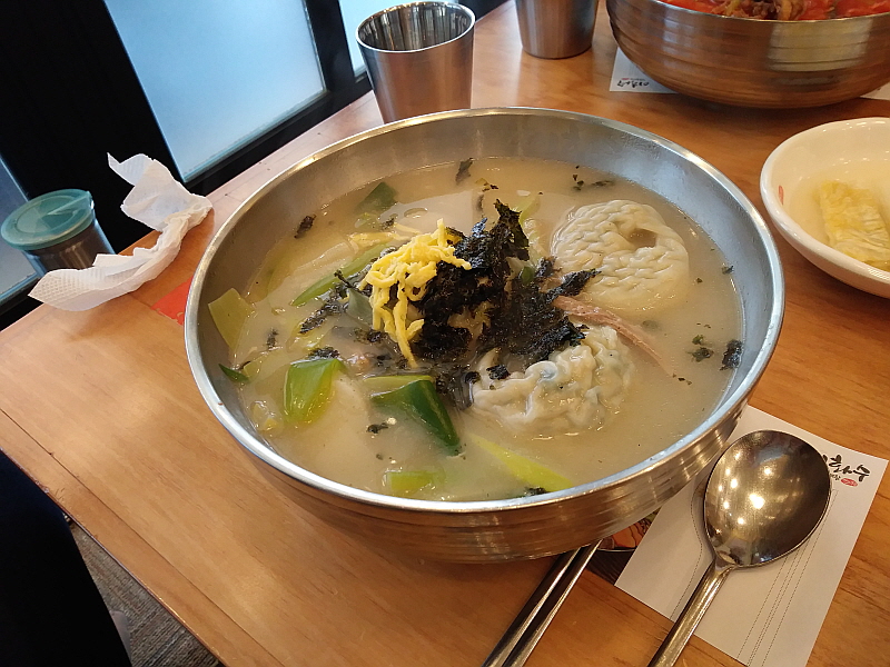 사실 나는 또 다른 일행이 주문한 떡만두국도 먹고 싶었다. 이 국물에 만두를 넣으면 사골만두국이 되는 것이니 말이다. 하지만 일단 그건 다음 기회로 미루기로 하고 이집의 시그니쳐 메뉴에 집중하기로 한 것이다. 물론 옆에서 먹고 있는 칼국수도 땡겼다. 그럼 다음에 와서 도대체 뭐부터 먹어야 하는 거야?