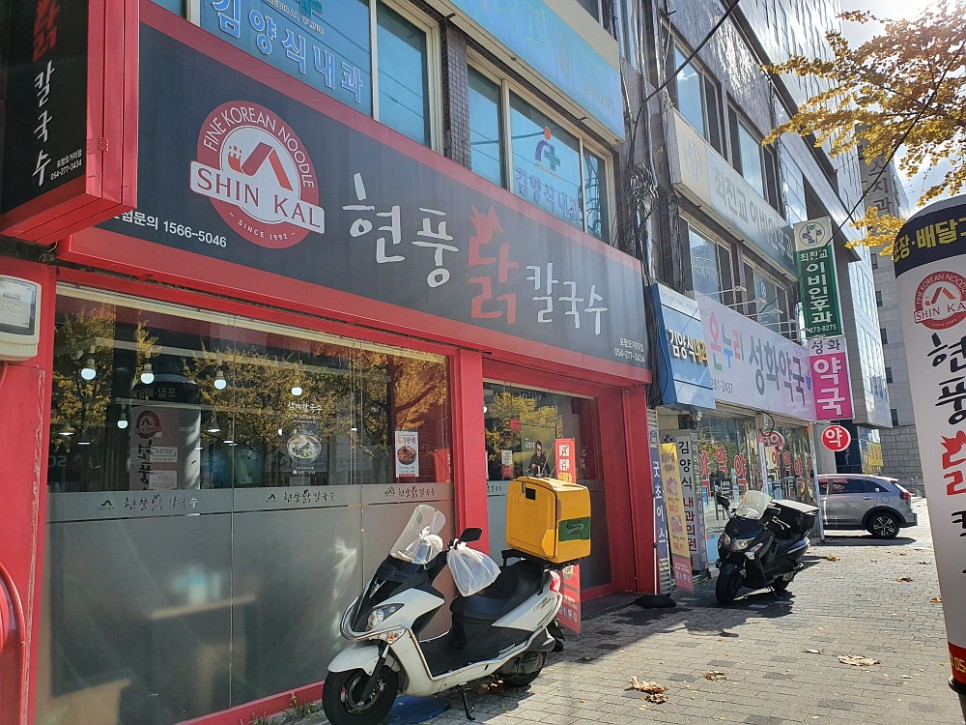 더구나 여긴 체인점이었다. 당연히 규격화된 일관된 맛을 선 보일 것이다. 그러고 보니 이런 체인점도 또한 처음이었다. 현풍 닭칼국수라는 상호는 들어 본 적도 없다. 개인적으로는 칼국수가 육고기 위주의 육수이거나 닭 육수 인 것을 좋아한다. 하지만 함께 한 이는 영 아니었다. 그래도 어쩌랴 이 낯선 곳에서 다른 아이템을 찾는 것이 얼마나 어려운 일인지 잘 아는 터라 우린 그렇게 적당히 여기서 허기를 달래기로 했다. 말 그대로 달래는 것이지 감동 받고 그런 것은 아니라 그렇게 생각하고 왠만하면 감사하리라 생각하고 들어갔다.