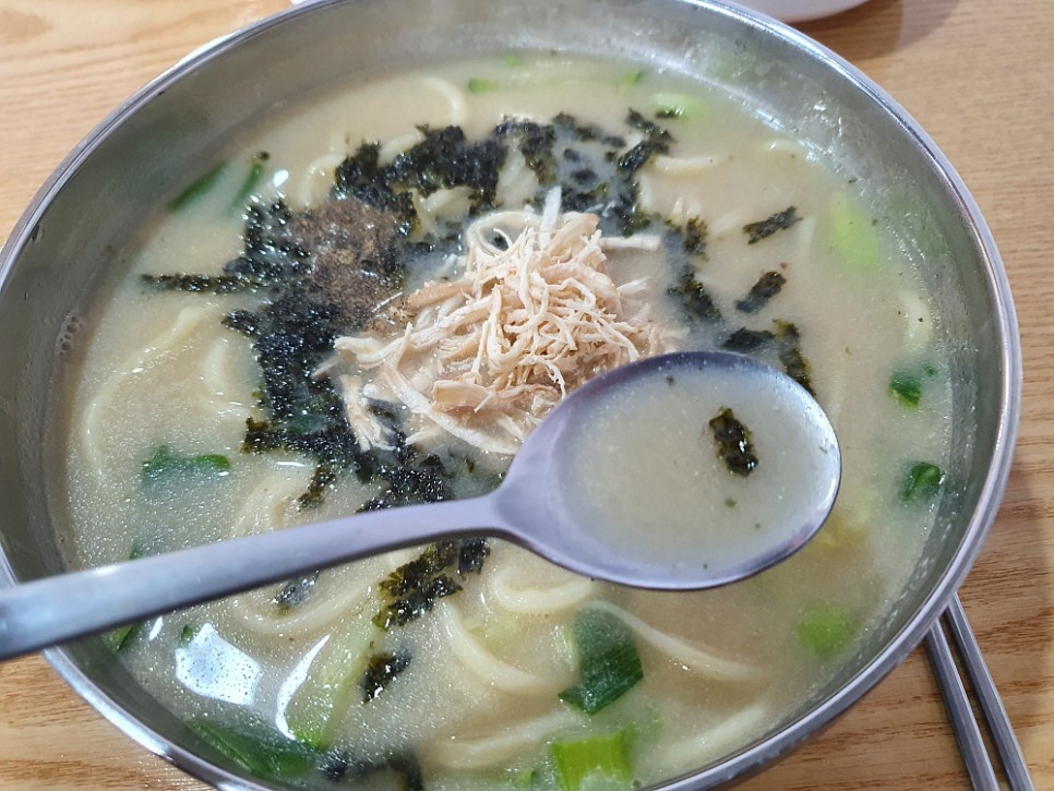 정말로 '왜 네가 거기서 나와?' 하는 생각이 들 정도로 정신이 번쩍했다. 이런 맛을 이렇게 헐한 상황에 만나면 안 되는 것인데... 보다 좋은 자리에, 좋은 상황에 만나야 하는 것인데 말이다. 이래서 세상은 참 넓은 것이다. 체인점에서 이런 감동을 받을 줄은 정말 몰랐다. 어쩐지 홀에는 손님이 없는데 종업원이 제법 있다 싶더니 배달이나 포장 손님이 많은 게지... 닭 국물이라지만 뭔가 육고기 비슷한 것과 디포리 같은 어물도 들어 간 것이 분명했다. 진짜로 만족스럽고, 참 게걸스럽게 먹을 정도로 입에 잘 맞았다. 아 이런 깊은 맛을 이렇게 만나다니~ 앞으론 좀 더 겸손하고, 공손해야 한다. 어디서 어떤 고수를 만날지 정말 모르는 것이 세상이다. 포항 시내 그닥 특징없어 보이는 체인점에서 깊은 깨달음과 깊은 국물을 맛보고 왔다.