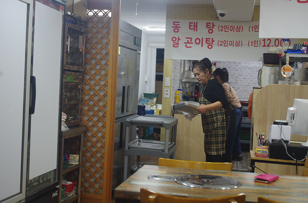우린 둘 다 워낙 명태 코다리를 좋아하니 바로 이집이 컨셉과 딱 맞는 집이었다. 화려하진 않지만 뭔가 현지인들이 좋아할 법한 분위기였고, 코다리가 통영이란 도시에서 나는 재료가 맞는지도 모르지만 어쨌든 같은 바닷가이니까 뭐 사촌 정도 되지 않겠냐는 되도 않는 추론에 근거한 생각이었다. 요즘 우리나는 명태가 잡히지 않아 어딜가니 국내산 보다 노르웨이니 핀란드니 하는 북해 근처에서 잡히는 명태가 주로 재료가 된다는 것을 알고 있지만 말이다. 너무 오래 걷다 보니 이런 정도의 타협은 오히려 건강에 도움이 되는 잘한 생각이다.