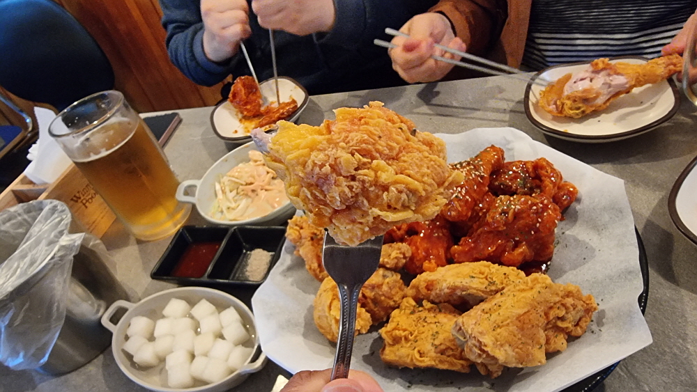 바로 튀겨낸 후라이드 치킨을 무엇과 비교할 수 있을까? 고소하고, 기름지고, 식감좋은 통닭은 전국민이 매일 수백만 마리를 먹어 치우는 바로 가장 인기있는 메뉴이다. 이날 밤에도 전국적으로 엄청난 양의 닭들이 튀겨졌을 것이다. 우리도 그 중에 하나고 말이다. 거기에 시원한 생맥주는 역시나 진리라 하겠다. 요즘 아침, 저녁으로는 선선하지만 한 낮에는 엄청 더운 초여름 날씨라 시원한 생맥주 한 잔을 먹으면 그 효용가치는 최대치로 상승한다. 후라이드 치킨도, 생맥주도 첫입에 주는 만족감과 식감은 뭐라 표현하기 힘들 정도로 좋은 것이다.