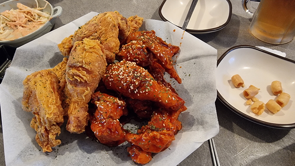 바로 튀겨낸 후라이드 치킨을 무엇과 비교할 수 있을까? 고소하고, 기름지고, 식감좋은 통닭은 전국민이 매일 수백만 마리를 먹어 치우는 바로 가장 인기있는 메뉴이다. 이날 밤에도 전국적으로 엄청난 양의 닭들이 튀겨졌을 것이다. 우리도 그 중에 하나고 말이다. 거기에 시원한 생맥주는 역시나 진리라 하겠다. 요즘 아침, 저녁으로는 선선하지만 한 낮에는 엄청 더운 초여름 날씨라 시원한 생맥주 한 잔을 먹으면 그 효용가치는 최대치로 상승한다. 후라이드 치킨도, 생맥주도 첫입에 주는 만족감과 식감은 뭐라 표현하기 힘들 정도로 좋은 것이다.