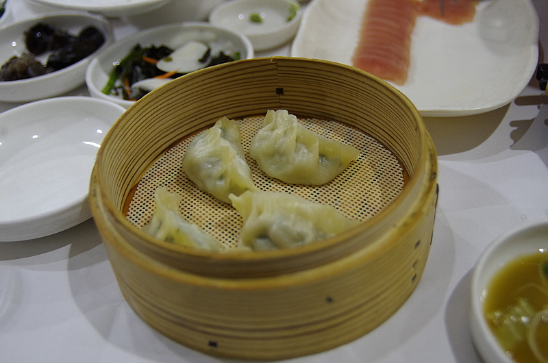 사브사브 고기를 고추냉이 양념 간장에 찍어 먹으면 마치 회를 먹는 것 처럼 부드러운 식감이 좋았다. 다음 메뉴는 뀡고기 만두였다. 이것도 너무나 유명한 음식이니 안 먹어 볼 수 없다. 나는 이 만두가 개인적으로 가장 맘에 들었다. 만두도 바로 만든 것이 아니라 만들어서 냉동에 넣었다가 주는 것이라 좀 바로 해먹는 그런 식감은 아니었지만 뀡고기 특유의 향과 고소함이 그대로 들어 있어 몇 개고 먹을 수 있을 것 같았다.