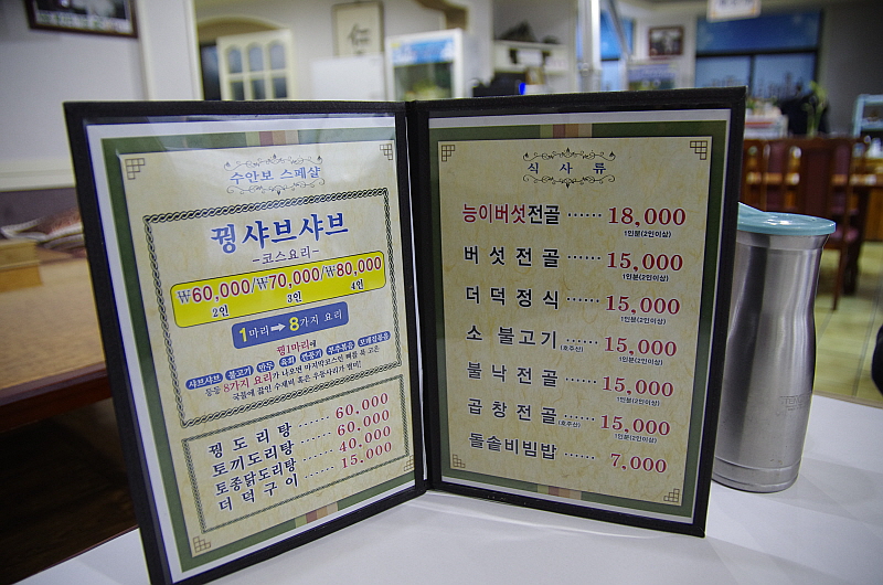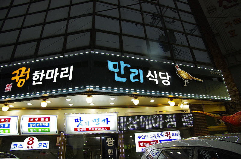 하지만 충주호와 온천보다 사실 더 기대가 된 것은 뀡요리였다. 아주 오래전 친구와 양주 어디에선가 먹어 봤던 뀡 사브사브의 고소하고 부드러운 뀡고기의 추억을 다시 한 번 느끼고 싶었다. 평소 즐겨먹지 못하는 음식이 바로 뀡이다 보니 내 기대는 무척 컸다. 갈 때는 왜 수안보에 뀡 요리집이 많은지 알지 못했다. 그저 말로만 들었다. 이곳에 유난히 뀡 관련 음식이 많다는 것을 말이다.