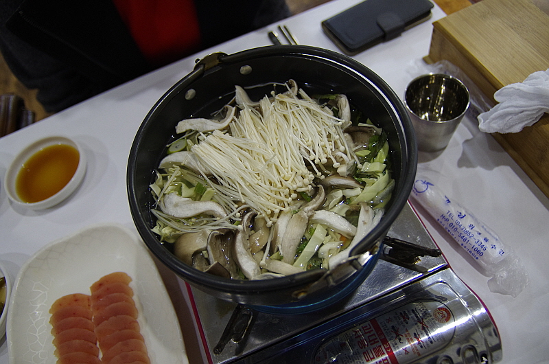드디어 마지막 요리는 매운찌개였다. 마치 오리 고기를 구워 먹으면 나오는 오리탕 같은 느낌의 뀡탕이었다. 거기에 보기에도 탐스러운 굵은 우동면을 넣어 준다. 평소 내가 얼마나 우동을 좋아하던가? 하지만 이건 정말 그림의 떡이었다. 도저히 먹을 수 없었다. 너무나 배가 불렀다. 마눌도 형편은 비슷해서 거의 손을 대지 못했다. 우린 이날 뀡고기로 단백질 제대로 보충한 셈이다.