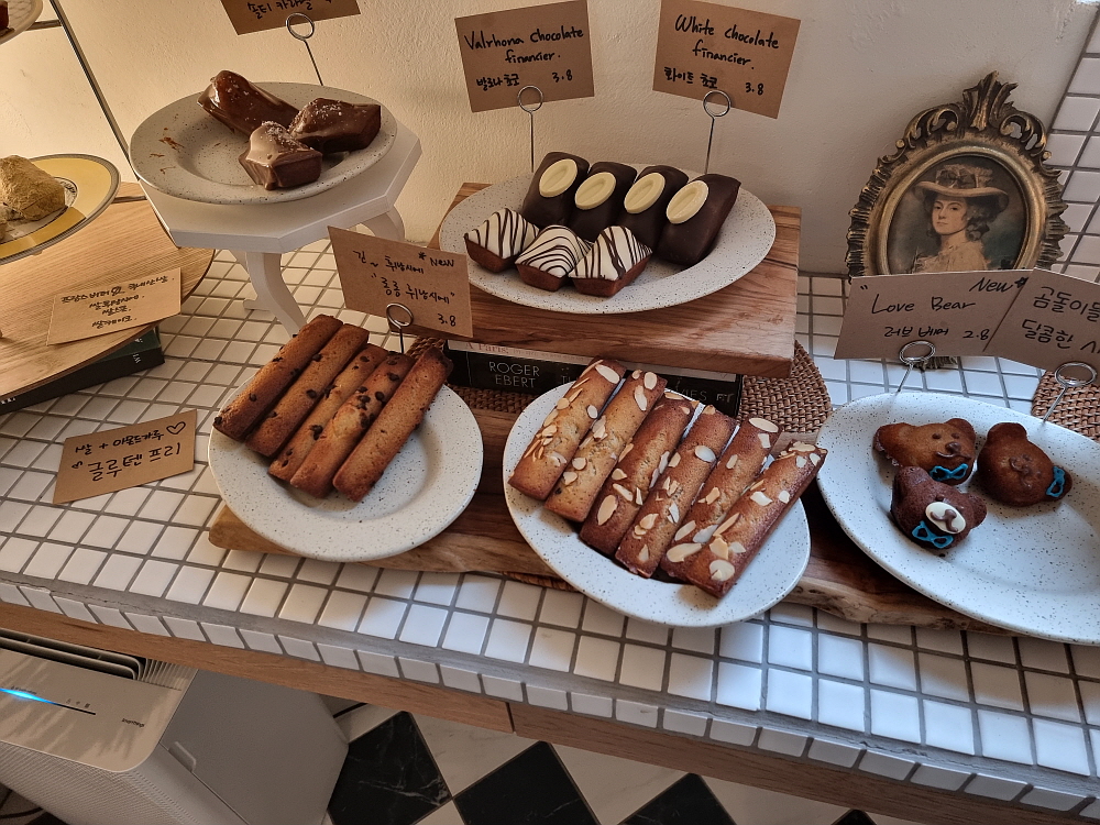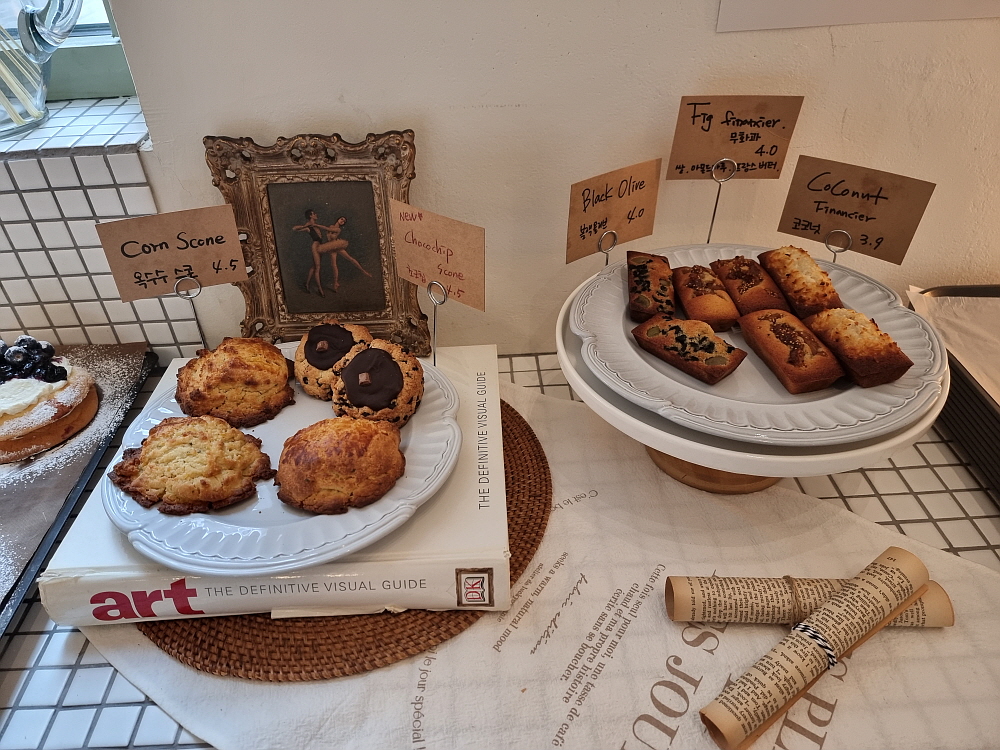 밖에서 볼 때도, 상호도 분명 카페지만 막상 안으로 들어가면 빵집이다. 하긴 요즘은 카페에서 빵을 만들어 파는 것이 유행처럼 되었다. 사람들이 빵을 좋아하기 때문이라는데, 특히 여자 손님들이 빵이라면 아주 사족을 못 쓴다는 것이다. 하긴 달달한 빵 한 조각과 커피는 나름 어울리는 조합이기도 하다. 하지만 점심 식사를 잔뜩하고 와서 다시 접시에 빵을 담는 모습은 솔직히 이해가 안 가는 풍경이기는 하다. 아무튼 우리도 그런 시대의 흐름을 따랐다. 차와 함께 디저트로 먹을 빵도 골라 담았다.