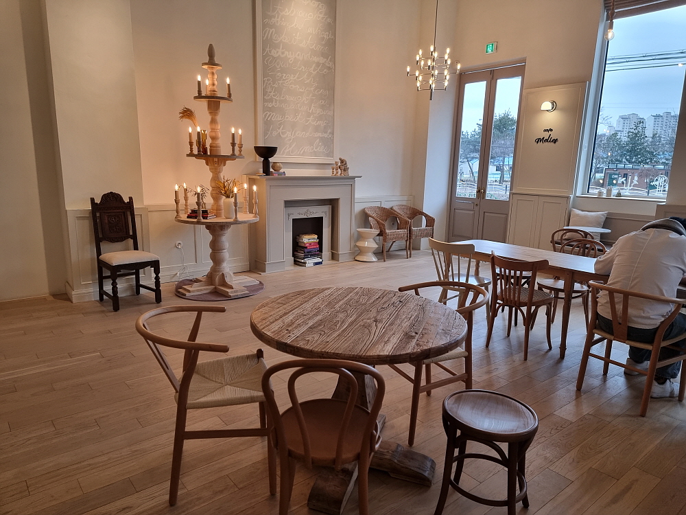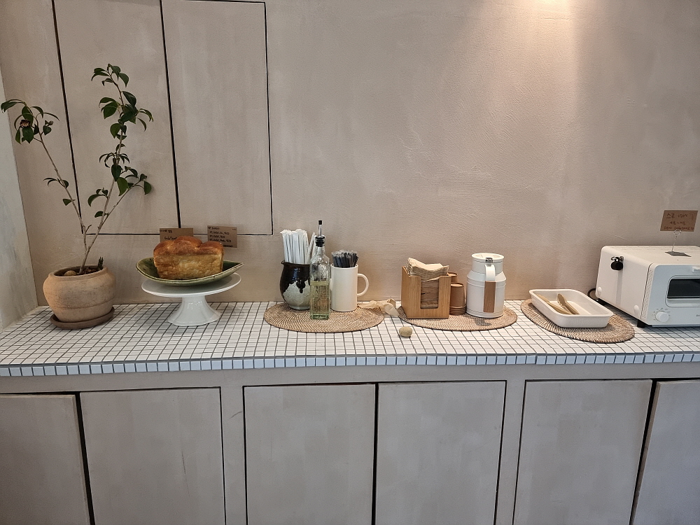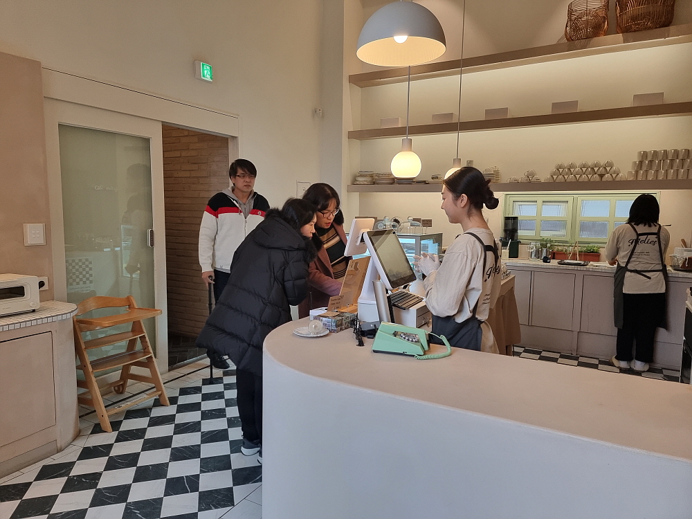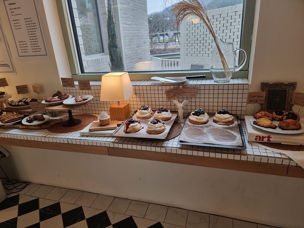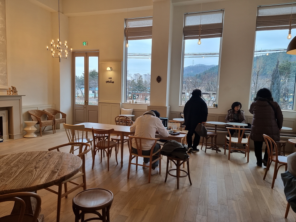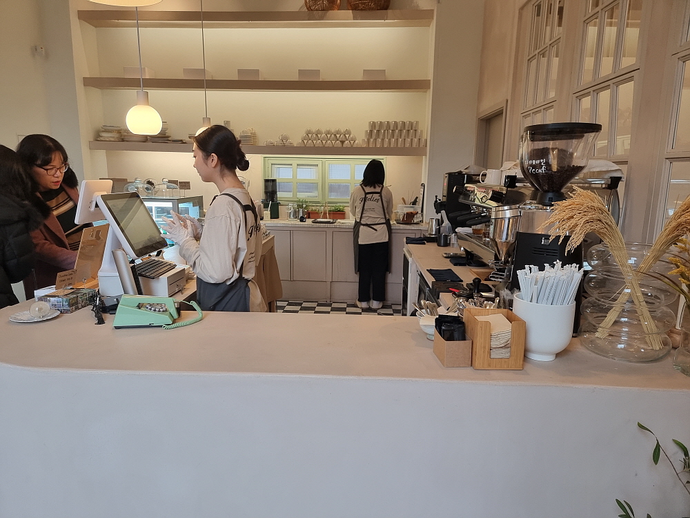 아메리카노 한 잔이 4,000원 이면 이게 비싼 것인지 저렴한 것인지 모르겠다. 다만 분위기나 실내 인테리어로 보면 고급진 곳임에는 틀림없다. 주문하는 곳에서 커피를 만드는 모양인데, 여기서 결제까지 하고 실내로 들어가면 꽤나 넓은 내부와 만나게 된다. 조용하고 고즈넉한 분위기이다. 커피향과 빵냄새가 가득한 실내에서는 이미 여러 손님들이 이 분위기를 즐기고 있었다. 왠지 여기서 얘기도 조용 조용해야 할 것 같은 그런 느낌이었다. 요즘 카페에서 공부를 하거나 혼자 시간을 보내는 손님이 많아 더 그렇다.