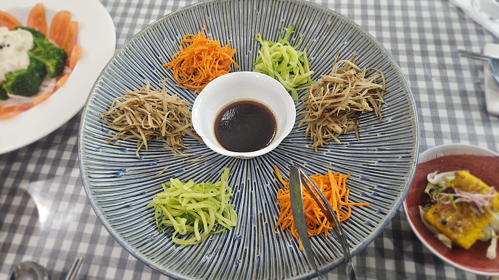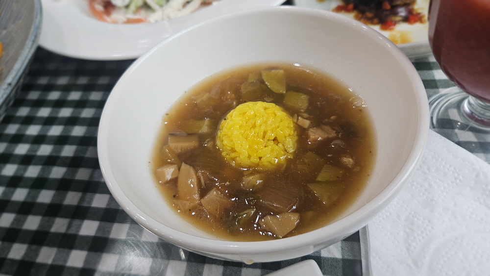 하지만 물질문명이 찌든 입에는 역시나 등갈비가 제일 맛이 좋았다. 역시 남의 살이 맛난 법이다. 호박으로 만들었다는 죽 비슷한 스프도 맛이 좋았다. 그나마 여기서 익숙한 맛이 나는 것들이다. 여긴 미리 예약하지 않으면 오기 힘든 곳이라 평소에 먹기 힘든 것을 수련하듯 먹는 곳이다. 자연치유라는 말이 식사시간에 이렇게 와 닿을 줄은 몰랐다. 그냥 조금은 김치찌개나 동치미 같은 반찬이 그립기는 했다. 하지만 한끼를 이렇게 자연적으로 먹는 자리에서 그 무슨 세속적인 생각이란 말인가... 역시 우리는 익숙한 것, 늘 먹던 것, 입에 맞는 것에 끌린다. 그래서 사람은 먹는대로 간다는 말이 있나보다.