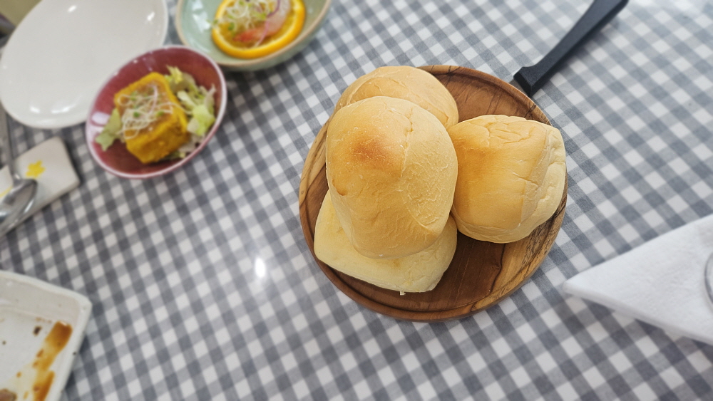 어떤 반찬이 특별히 맛있었다는 기억보다는 전체적으로 매우 특이하고 건강한 맛이었다는 생각이다. 우리가 늘 보던 같은 재료를 이렇게 다르게 음식으로 만들 수 있다는 사실이 놀라웠다. 월남쌈 같아 보이는 채소를 싸서 빵 사이에 넣어 먹으면 햄버거처럼 된단다. 참 신기하게도 전혀 다를 것 같지만 말 그대로 만들어 먹어 보면 식감이 비슷했다. 이럴수가... 힘든 일을 마치고 뭔가 마구 우걱 우걱 씹어 먹고 싶은 일꾼들에게는 다소 부족하다 싶을지 모르겠지만 우리에겐 너무나 황송한 음식들이었다. 값이 얼마인지를 떠나 이런 음식은 혼자 먹기가 조금 미안하다. 귀한 누군가에게 대접하고 싶은 음식들이다.