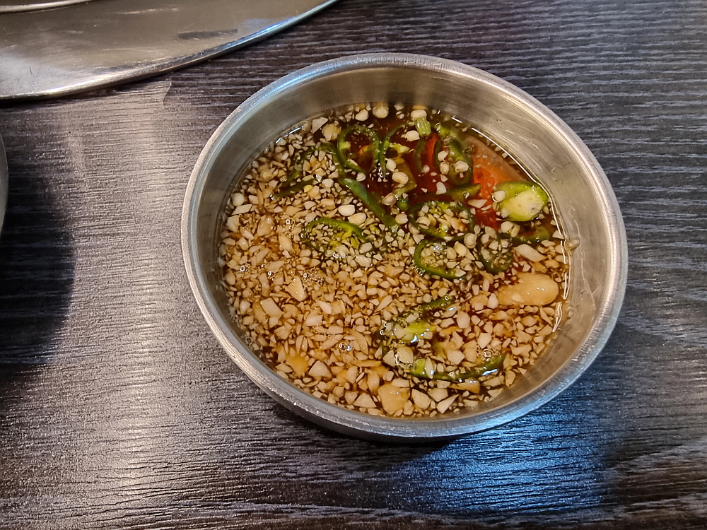 드디어 곱창이 나왔다. 그런데 보니까 생곱창이 아니라 한 번 익힌 그러니까 수입곱창인 것 같았다. 확실하지는 않다. 다만 이렇게 기름을 깔끔하게 정리하는 것이 생곱창은 힘들기 때문이다. 그래도 맛은 좋았다. 사실 생이든 국내산이든 맛이 제일 중요하다. 곱도 꽉 차 있었고, 씹는 식감도 훌륭했다. 사실 곱창은 이 두 가지 맛이 제일 중요하다. 양으로 승부를 거는 음식은 아니지 않던가? 그리고 워낙 염통을 좋아하기 때문에 추가로 주문했다. 그런데 염통도 여긴 특이했다. 보통은 얇게 편처럼 썰어주는데 여긴 깍뚝썰기로 마치 큐빅처럼 만들었다.