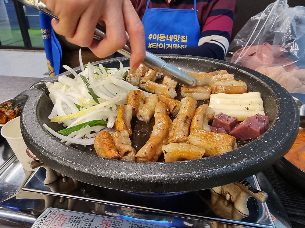 여행을 다녀 오는 길에 중간쯤인 대전의 유성을 들리는 것이 이젠 습관처럼 되어 버렸다. 이곳 유성은 저렴한 가격과 다양한 아이템이 공존하는 나그네들의 성지 같은 곳이다. 가성비 좋은 숙박업소도 많고, 돌아 다닐 수 있는 먹자골목도 많다. 정말 먹거리, 놀거리의 천국이다. 그래서 이날도 들렀다. 숙소에서 나와 어딜 갈 것인가 궁리하며 돌아다니던 우리 눈에 이집이 들어왔다. 역시나 비교적 가성비가 좋은 곱창집이라 하겠다. 이름하여 동네곱창이다. 이런 집은 꼭 들어가야 할 것 같다.