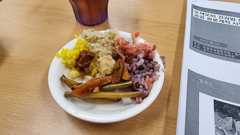 우연히 지난 10일 포천의 사회적 경제기업인 포실포실 협동조합의 사업 설명회를 참가할 기회가 주어졌다. 이전부터 이 협동조합의 활동은 알고 있었고, 몇 번의 설명회도 가 본적이 있다. 하지만 이번에 설명회를 통해 오색오미라는 새로운 밥의 존재를 알게 되었다. 이 제품은 포실포실 협동조합에서 전문가들의 조언을 받아 개발한 잡곡밥인데 말 그대로 다섯 가지의 색을 가진 다섯 가지의 맛이 나는 즉석밥이다.