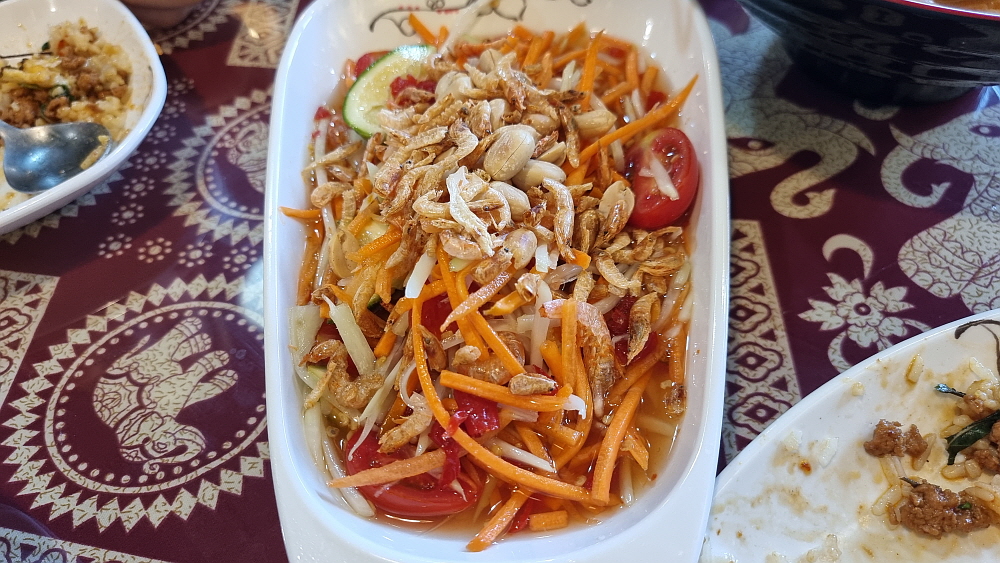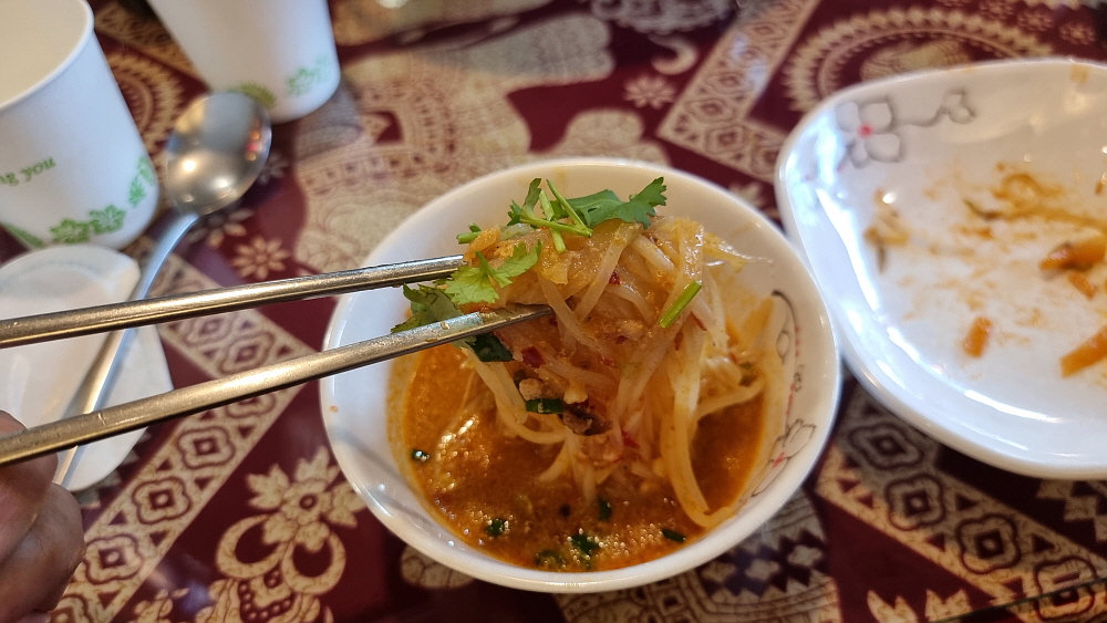 태국음식 중에 가장 많이 먹어 본 것이 바로 팟타이인데 이집의 팟타이는 수준이 높은 편이었다. 적당한 기름기와 달달한 양념, 그리고 입에 착 붙는 간간함까지 아주 훌륭했다. 팟타이를 처음 먹는다는 사람도 맛이 좋다면서 연신 가져다 먹었다. 다음으로는 음식의 이름을 도저히 외울 수 없는 생소한 것들을 주문했다. 대부분이 태국에서는 아주 흔한 음식들이란다. 하지만 처음 먹어보는 사람 입장에서는 이집의 음식들이 대체로 낯설고 비싸다는 느낌이 들었다. 우리 외에 손님이 한 팀 더 있었지만, 음식은 빨리 나오는 편이었다.