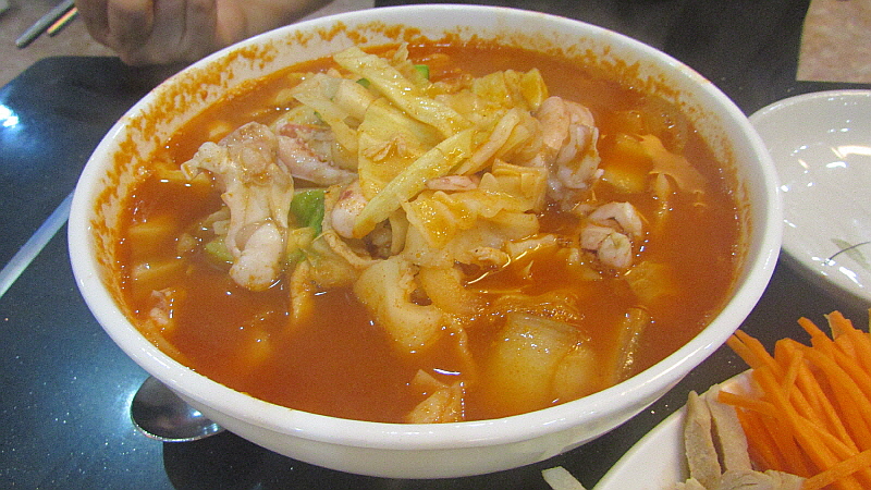 일행은 늘 고집스럽게 좋아하는 짬뽕을 주문했다. 어쩌면 이것도 나를 위한 배려인지도 모른다. 안주삼아 먹으라고 말이다. 술 많이 먹는다고 늘 잔소리를 하지만 이럴땐 또 속깊은 배려를 해주니 참 몸둘바를 모르겠다. 짬뽕은 마치 게찌개를 먹는 느낌이 들 정도로 꽃게맛이 강하게 났다. 고급스럽고 감칠맛 나는 짬뽕이었다. 양장피와 고량주, 짬뽕으로 제주에서 거한 중국상을 받은 셈이 되었다.