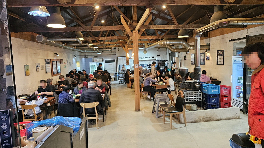 하지만 인기만은 못지 않은 곳으로 11시 30분이면 벌써 넓직한 주차장이 차들로 가득찬다. 자리가 없을까봐 미리 오는 손님들이 그렇게나 많은 것이다. 우리도 다르지 않았다. 우린 11시 25분에 이집에 갔다. 입구와 가까운 홀의 테이블은 이미 만석! 우리는 옆에 방처럼 생긴 곳으로 가야 했다. 이집의 인기 비결 중에 하나는 손님들이 맘껏 돼지 부속고기 삶은 것은 가져다 먹을 수 있다는 점이다. 처음 그런 방식으로 인심을 후하게 쓰면서 소문이 난 것으로 보인다. 이젠 이집의 방식을 따라하는 집들이 많다. 사실 돼지 부속고기의 원가는 무척 저렴한 편이다. 그러니 이집의 후한 인심은 참 슬기로운 영업방식인 셈이다.