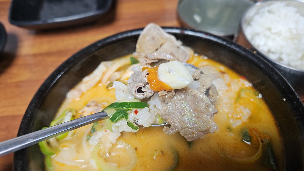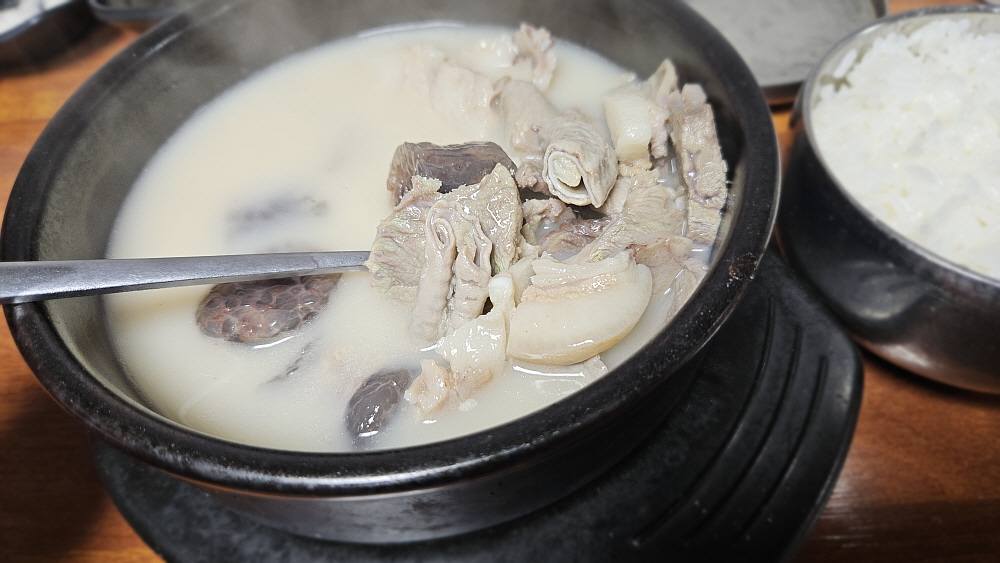 이집엔 배추 김치도 있고, 석박지도 있다. 석박지의 맛이 더 좋은 것 같았다. 시원하고 달달한 무김치의 맛은 구수하고 진한 국물을 만나면 배가 된다. 거기에 알싸한 생 마늘이 곁들여지면 이날의 점심은 누구도 부럽지 않은 황제의 식사 이상이 된다. 다들 국 그릇에 코를 박고 전념하여 먹기 바빴다. 원래 국밥은 이렇게 먹어야 제맛이다. 자유롭고, 편하게 그렇지만 야무지게 먹어야 한다. 어찌나 건더기가 많은지 밥을 덜 말아 먹는데도 다 먹기가 버거울 정도였다. 과연 이름있는 집이 다르긴 하다. 여긴 아재들만 오는 것이 아니다. 젊은 친구들도 많다. 진하지만 깔끔한 국물 때문인가보다. 역시 한국 사람은 국밥이다. 여기서 또 느낀다.