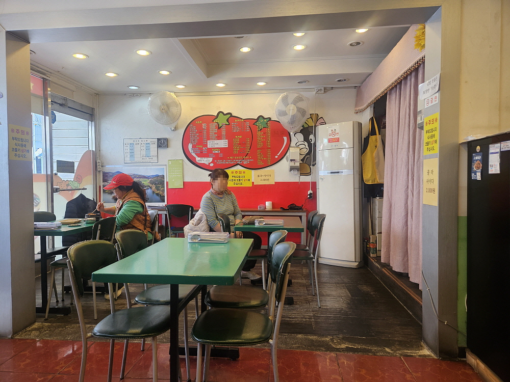 이런 구성이 바로 분식집의 자연스럽고 부담없는 푸짐함이다. 가성비가 좋기 때문에 선택에 무리가 있다 해도 지갑 걱정할 필요는 없다. 문제는 맛인데 아무래도 일인분에 몇 만원씩 하는 한정식과는 비교하기 그렇고 우리가 흔히 아는 김밥천국과는 견줄 수 있는 그런 노멀한 맛이라 하겠다. 아니 익숙한 맛이다. 여기서 음식을 먹고 있노라니 왠지 학생시절로 돌아간 기분이 들었다. 이집은 방과 후가 되면 학생들로 발디딜 틈이 없을 그런 곳이다. 내가 학생이었다면 참새가 방앗간 들리 듯 그렇게 이집을 들락거렸을 것이다.