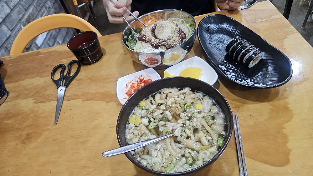 여기도 분위기는 김밥천국과 비슷했다. 엄청나게 많은 메뉴를 보면 분명 즉석에서 조리는 방식일 것이라는 생각이 든다. 그래도 가성비는 정말 좋다. 요즘 어디서 5~6천 원짜리 음식을 시켜 먹을 수 있단 말인가? 점심시간 홀에도 손님이 있긴 했지만 포장해 가는 사람들이 정말 많았다. 아무래도 분식은 대표 한 사람을 뽑아서 김밥이나 떡볶이를 잔득 포장해 가는 것이 점심용으로 제격일 것이다. 우리는 김치우동과 김밥과 쫄면을 주문했다. 쫄면은 어쩌면 영혼의 단짝 같은 음식인 것 같다. 어린 시절 그렇게나 많이 먹었는데도 지금도 먹고 싶은 마음이 그렇게나 들게 하니 말이다.