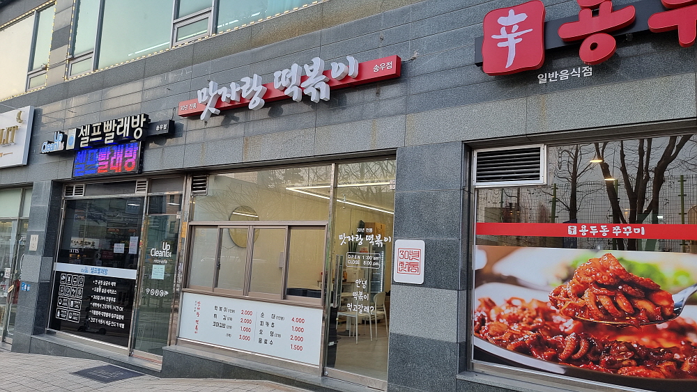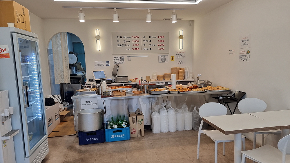 송우초등학교 후문 바로 앞에 있는 떡볶이 집을 갔다. 이름하여 맛자랑 떡볶이 집이다. 초등학교 근처의 식당들은 모두 가성비가 좋은 편이지만 이집의 떡볶이 일 인분의 가격은 2,000원 밖에 안 된다. 이럴수가... 요즘 같은 시대에 이런 가격으로 음식을 파는 곳이 있다니... 요즘 송우초등학교는 학생수가 줄어 고민이라 하던데 이런 가격으로 팔면서 많이라도 팔아야 할텐데 하는 남의 일 걱정을 하게 될 정도로 착한 가격인다. 우리는 여기서 떡볶이와 오뎅 그리고 한 줄에 500원 밖에 하지 않는 꼬마김밥을 먹기로 했다.